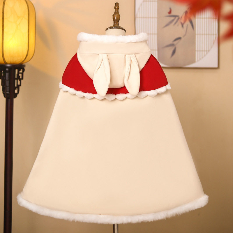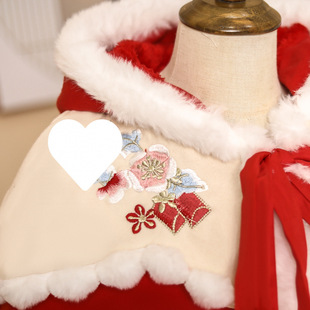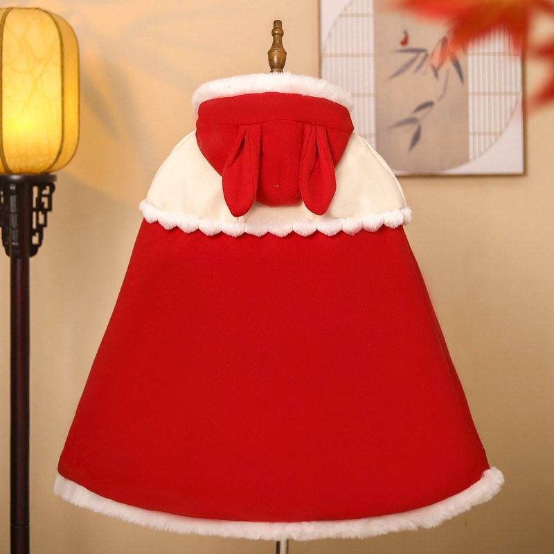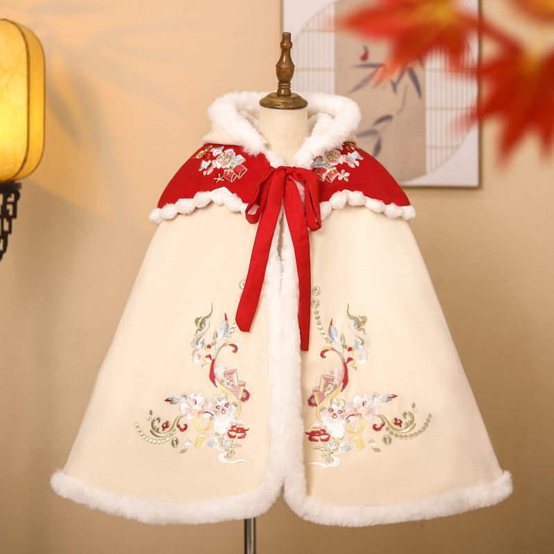 汉服女童冬季 拼色披肩拜年服 兔子刺绣披风斗篷仙女加厚中国风古装