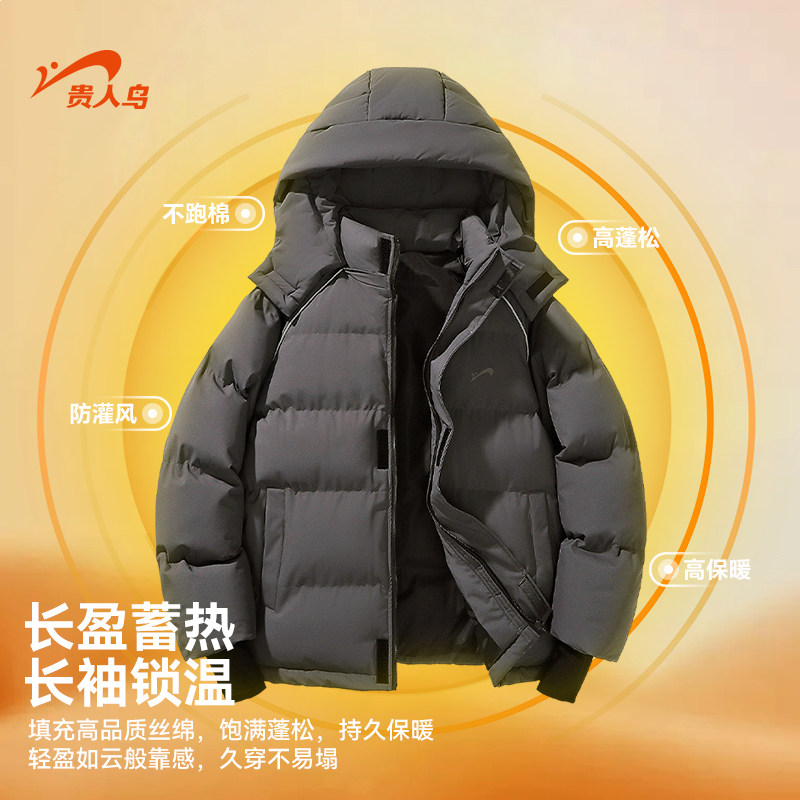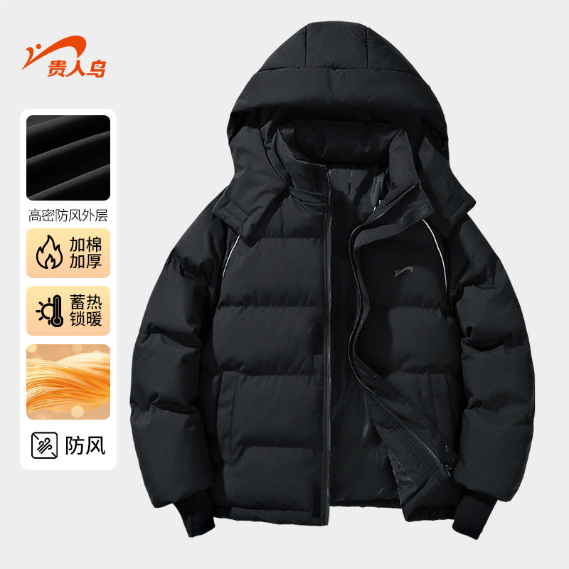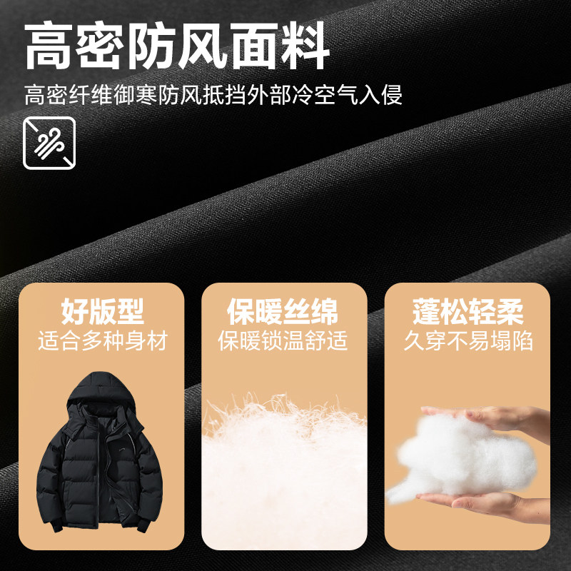 班尼路S&K系列连帽棉服女2025新款 加绒保暖通勤百搭立领棉袄Q 冬季