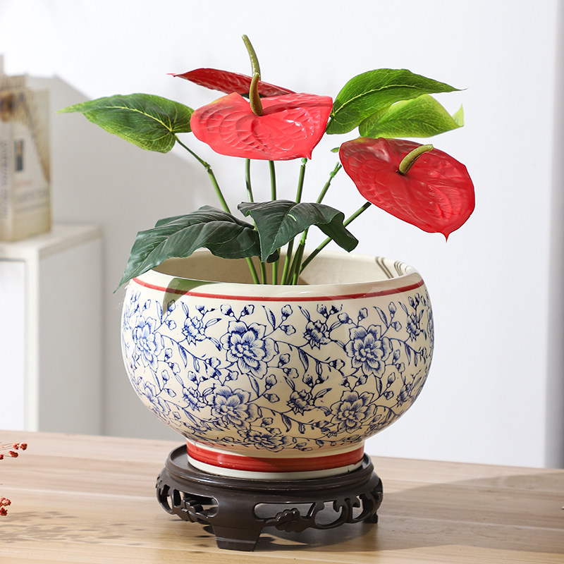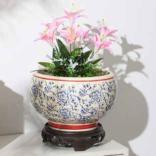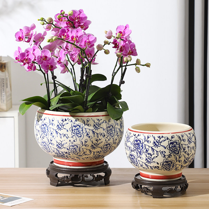 新款 清仓 陶瓷花盆青花家用蝴蝶兰专用盆大口径发财树绿萝盆栽特价