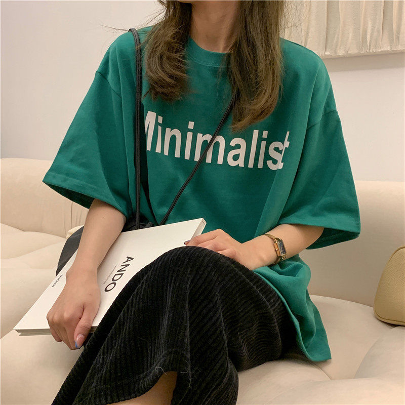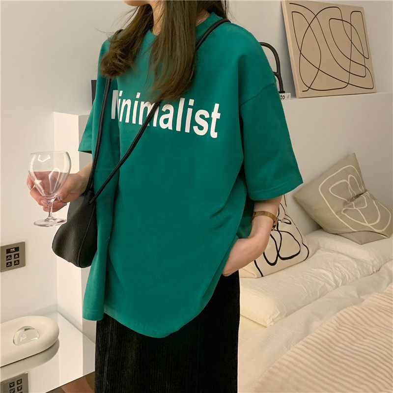 T恤女上衣ins学生女潮 百搭潮流宽松小众绿色上衣短袖 2026夏季 韩版