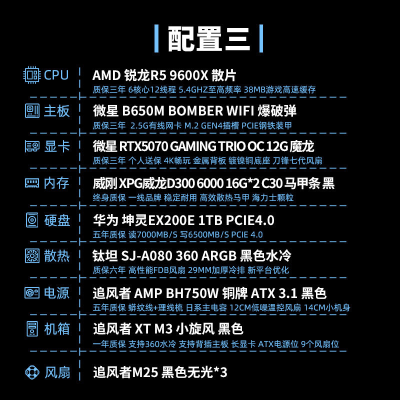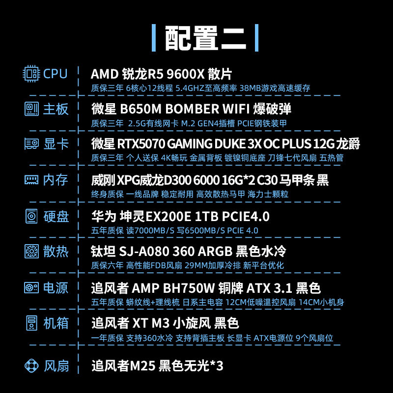 龙爵 魔龙 追风者XTM3 9600X 放射 幻影师 游戏主机 微星5070