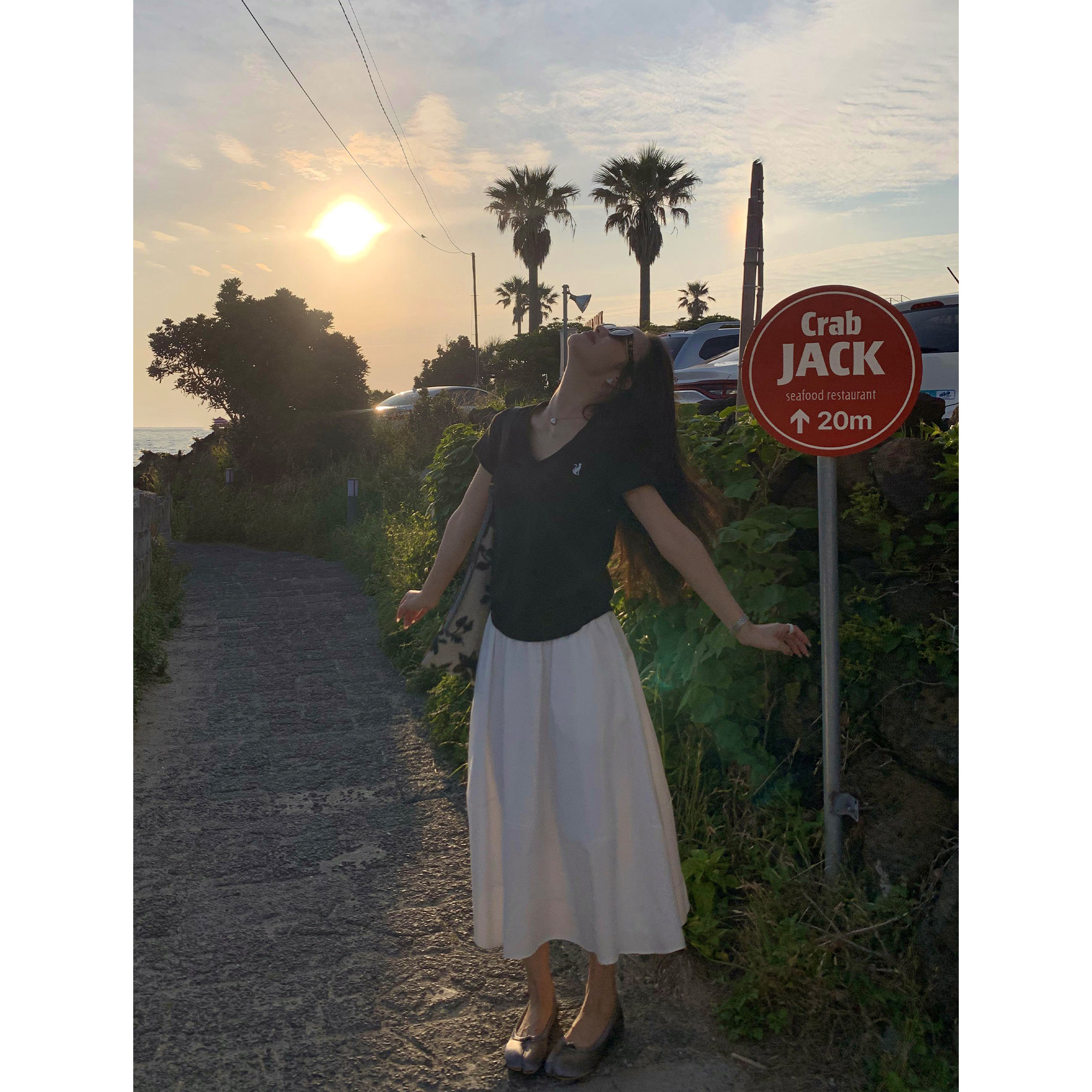 pusumede 白色半身裙女松紧腰a字遮胯长裙宽松气质伞裙 棉锦混纺