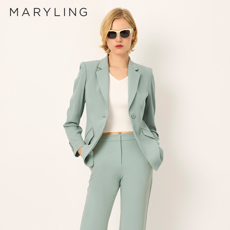 平驳领收腰西装 薄荷绿经典 A1FBW10090 新品 MARYLING玛俪琳2025春季