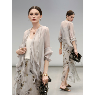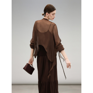 LC0002 COCOBELLA静奢风10M对丝荷叶边飘带雪纺衫 美拉德开衫