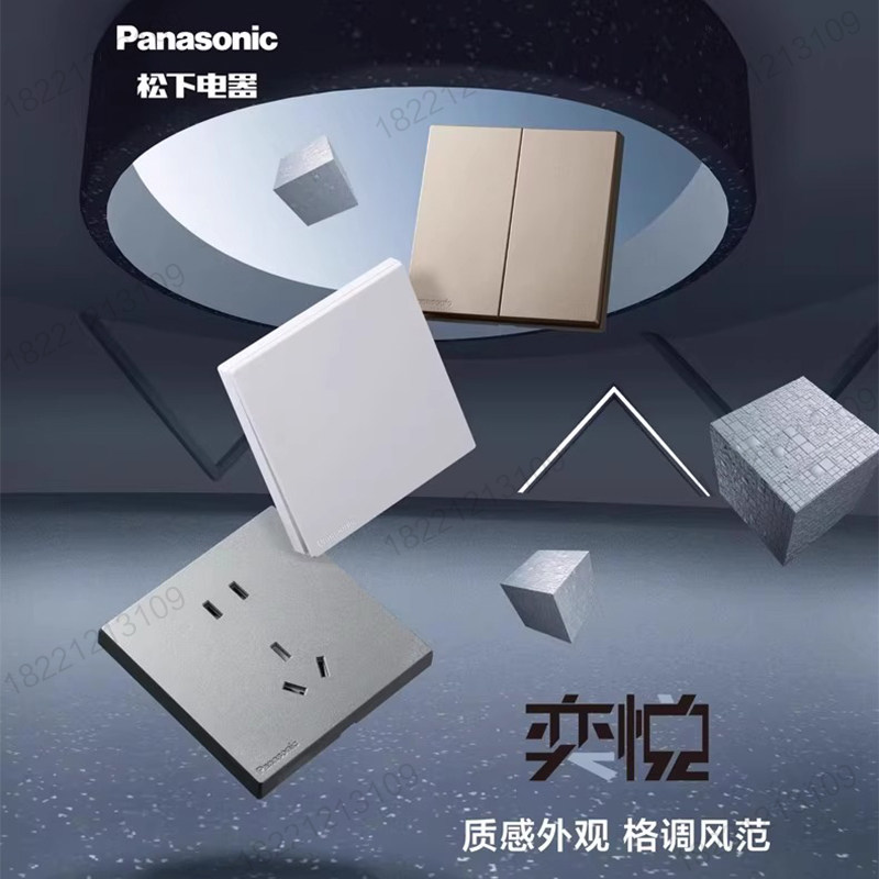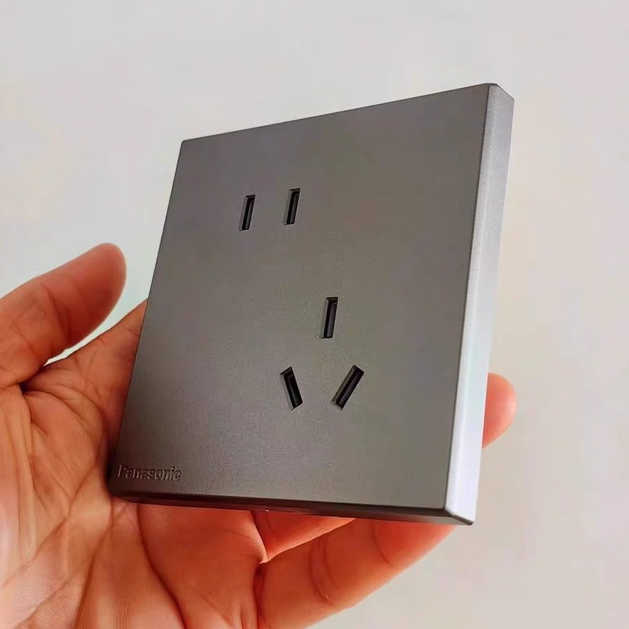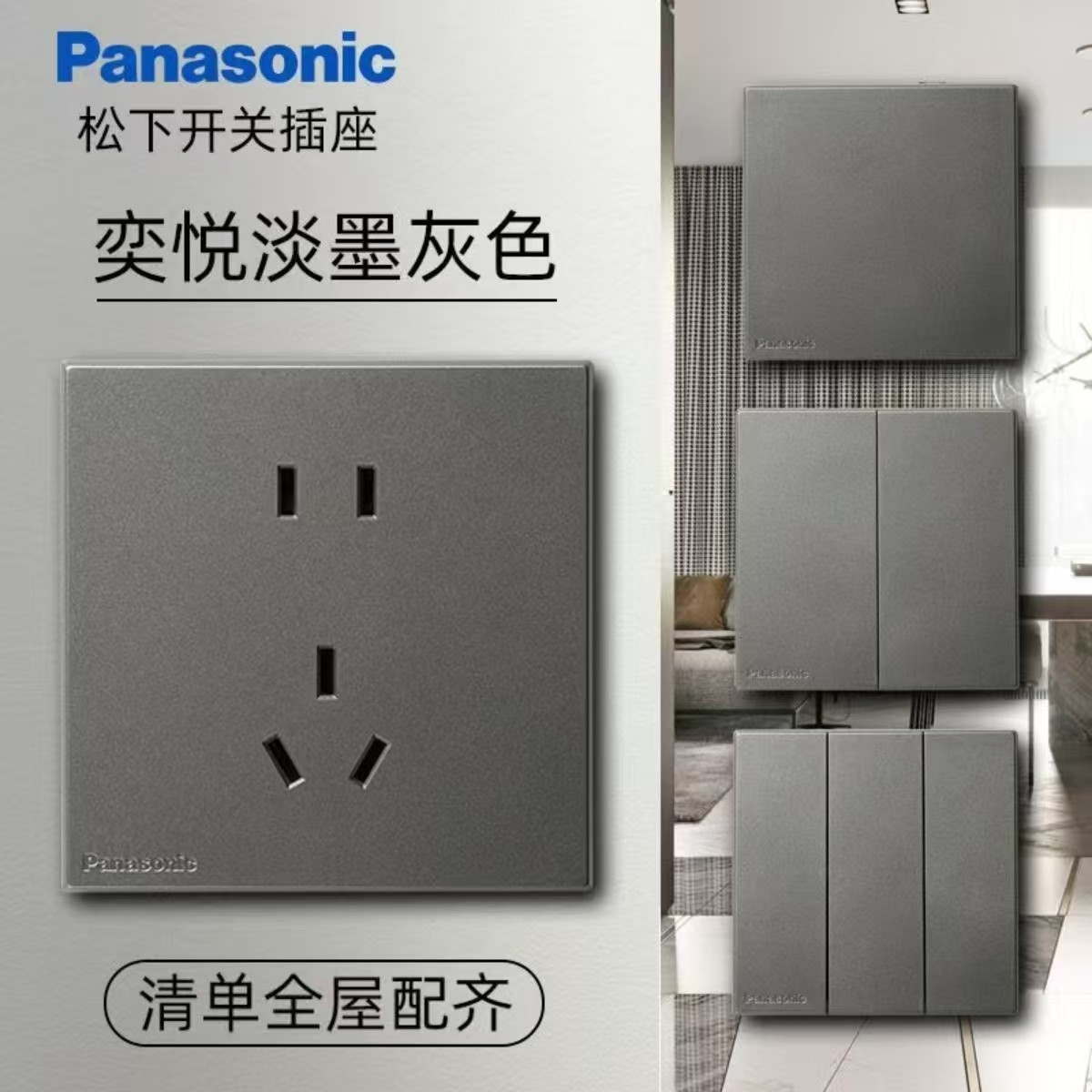 松下新款 开关插座奕悦淡墨灰色磨砂哑光超薄家用一开斜五孔空调16