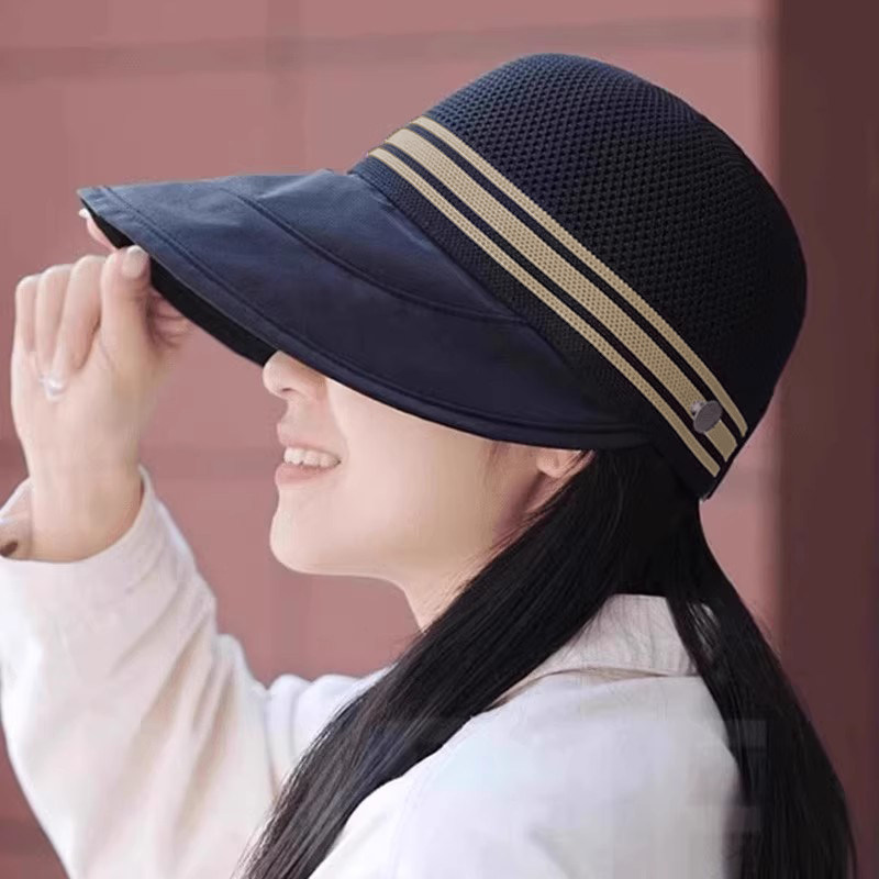 2026新款 速干镂空透气大檐空顶沙滩遮脸渔夫帽 防晒遮阳帽子女夏季