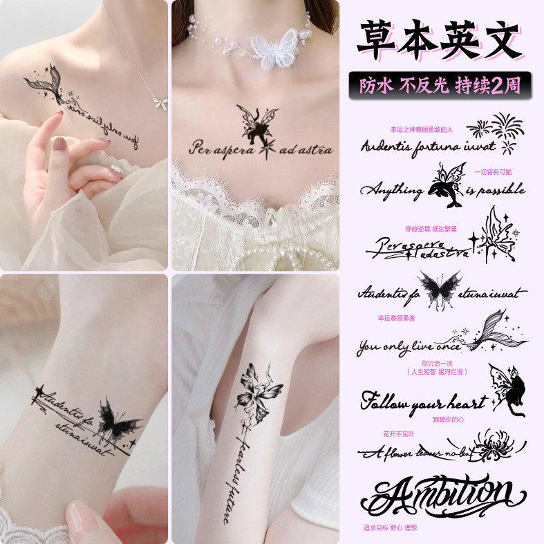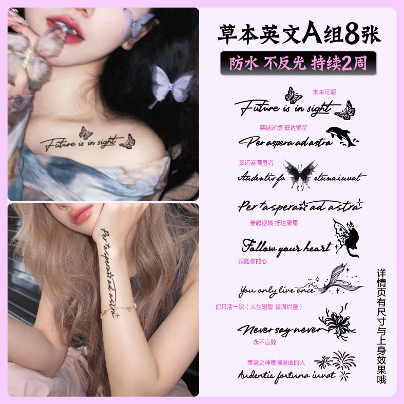 独角小怪兽草本英文字母纹身贴持久女仿真果汁小清新锁骨防水贴纸