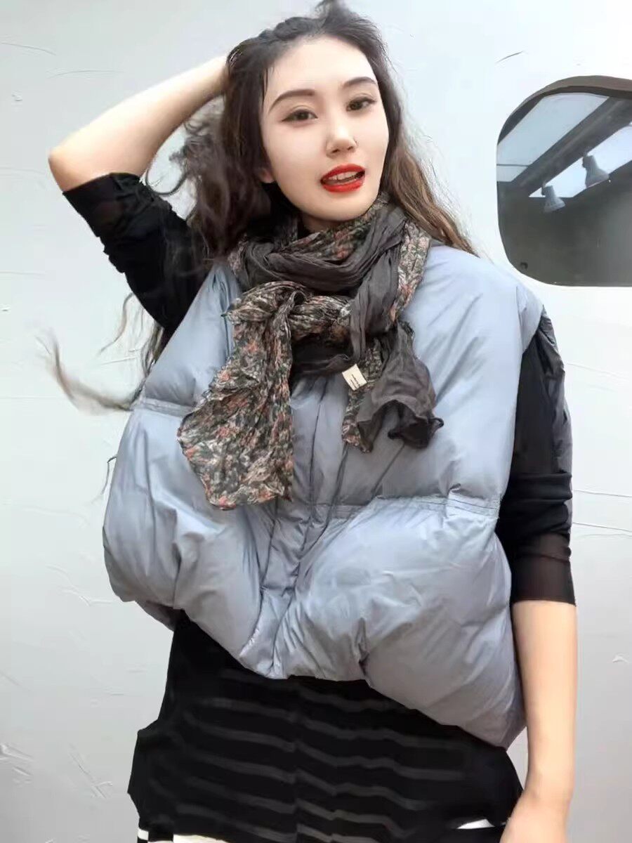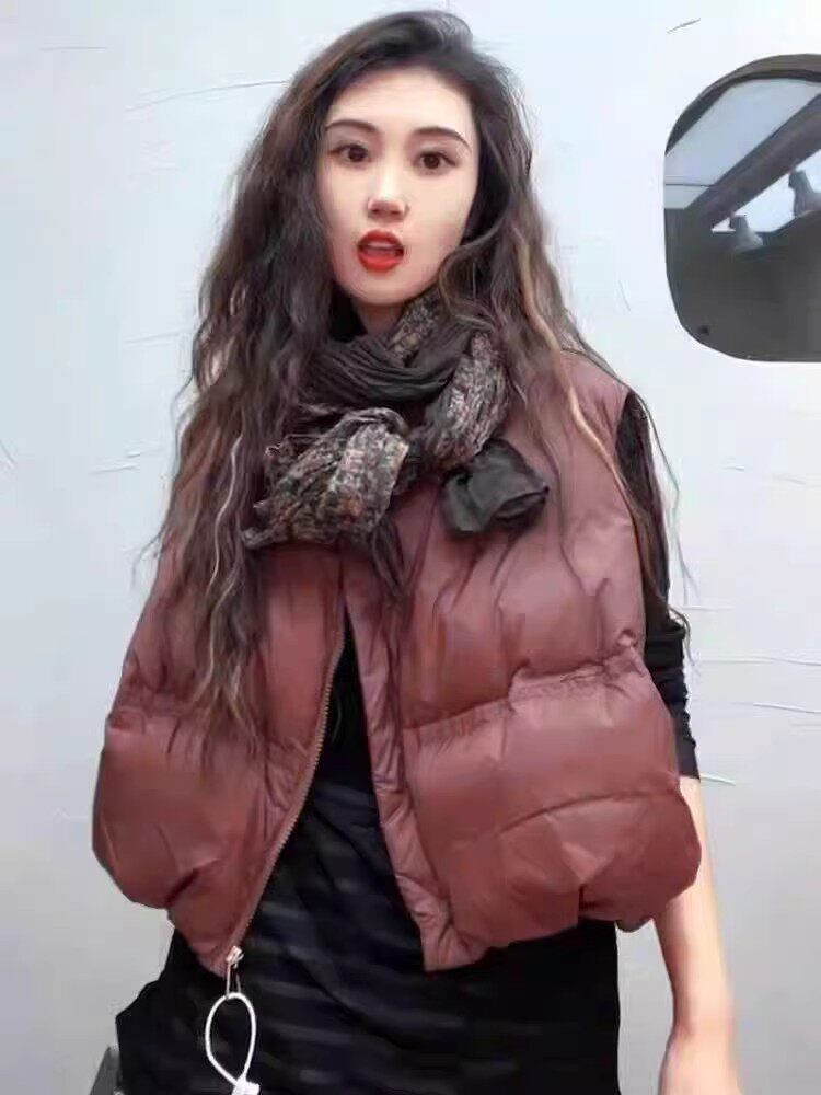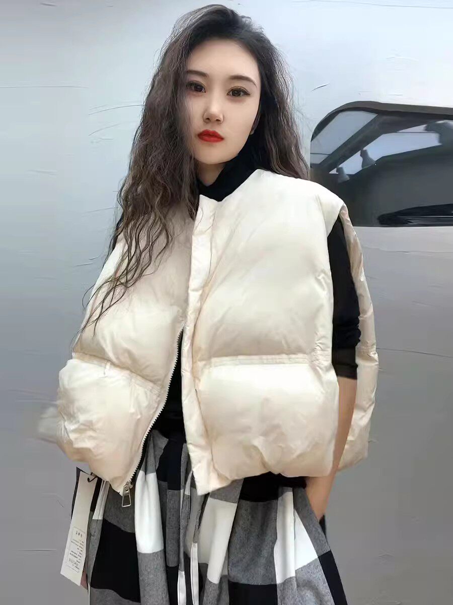 宽松小个子白鸭绒坎肩背心马夹外套上衣 新款 短款 羽绒马甲女秋冬季