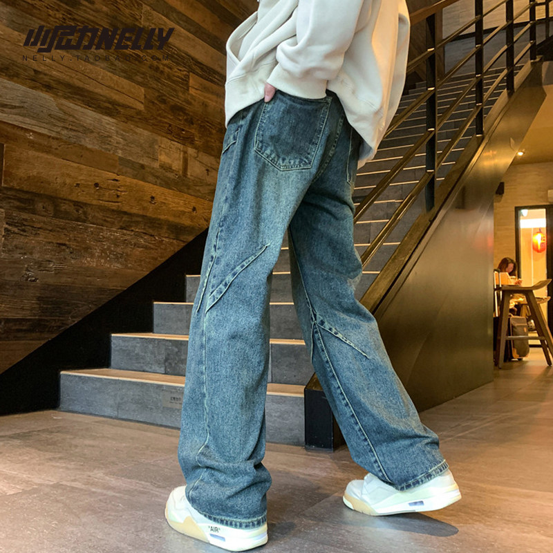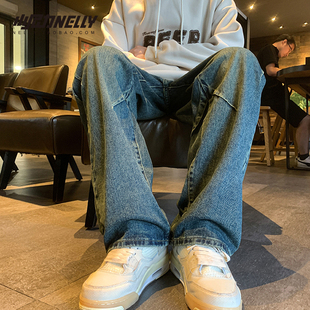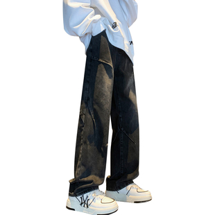 子 男直筒复古休闲宽松潮牌阔腿长裤 查尔斯桃心美式 小狗弯刀牛仔裤