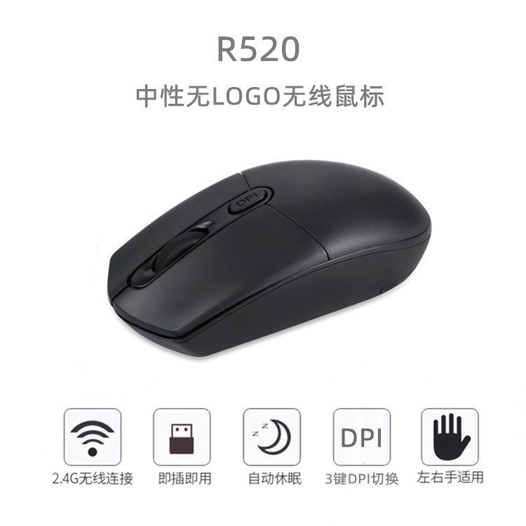 R520全英文包装 电脑配件办公跨境USB鼠标 中性无静音无线鼠标