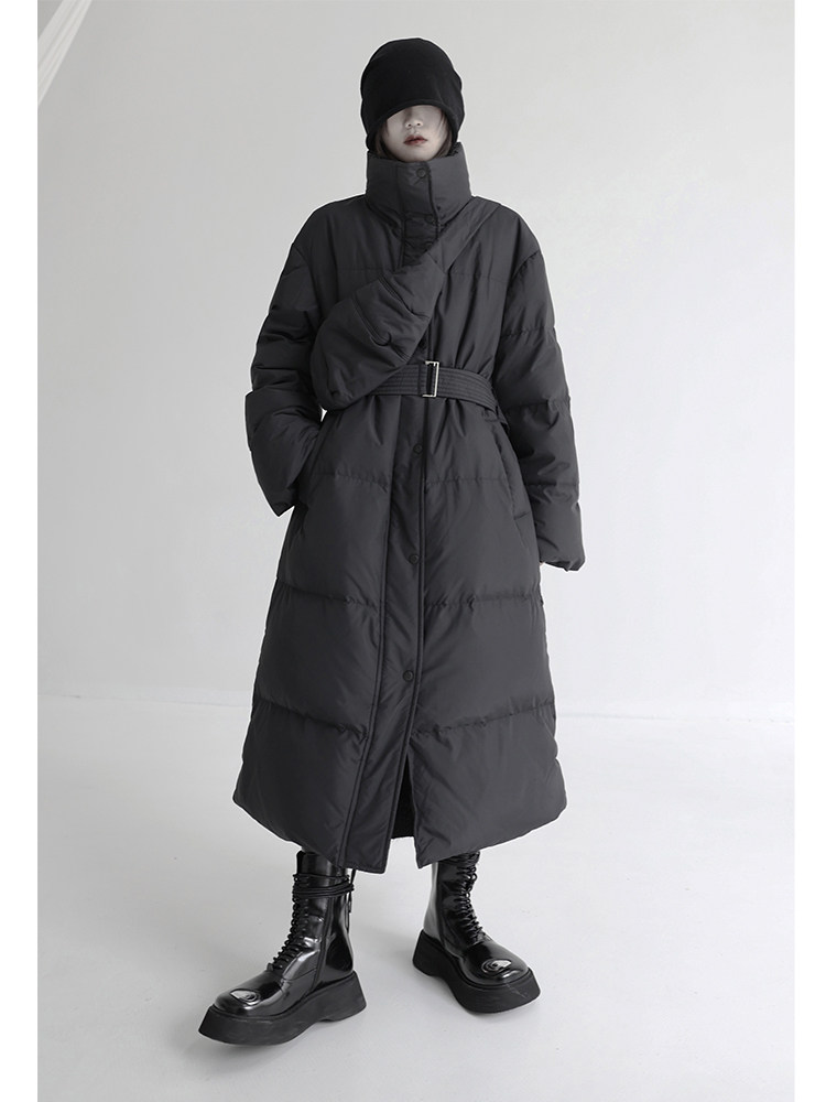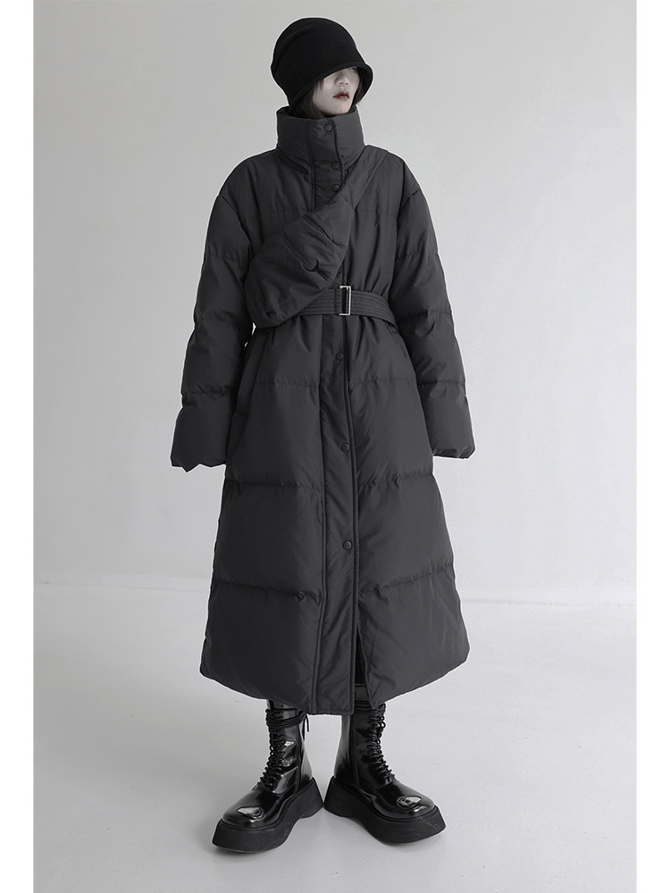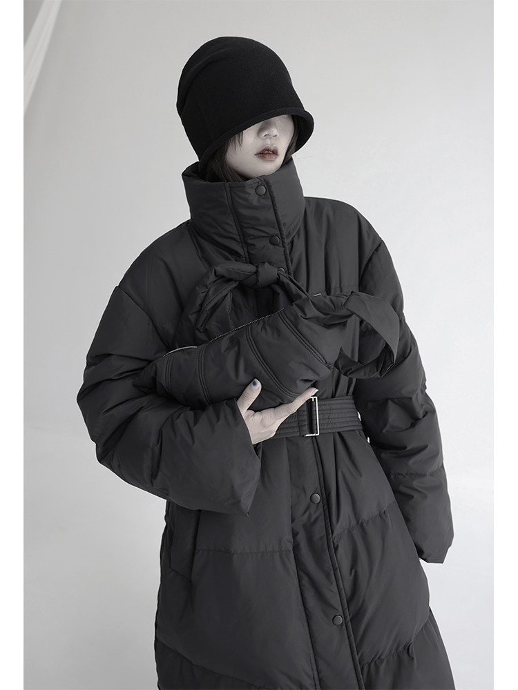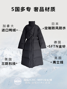 羽绒服女90白鸭绒加厚保暖过膝外套 宽松立领黑色长款 清仓处理