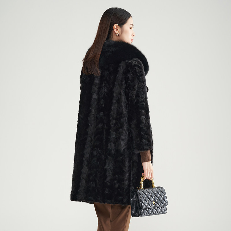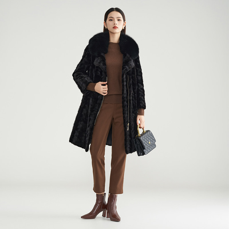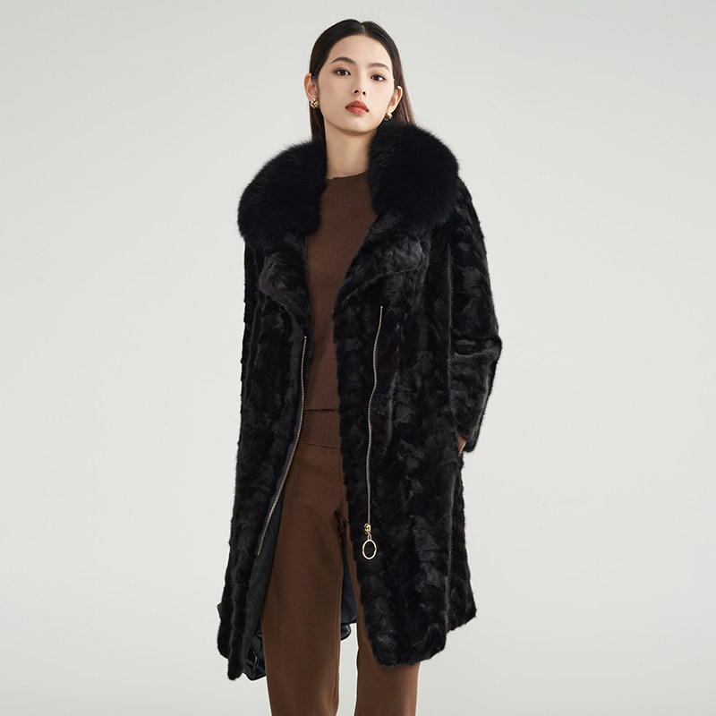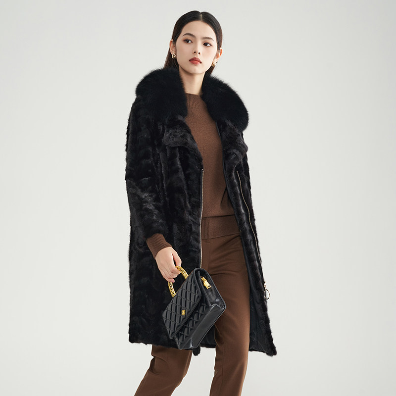 新款 马天奴冬季 黑色毛领皮草大衣保暖加厚拉链外套 水貂毛皮