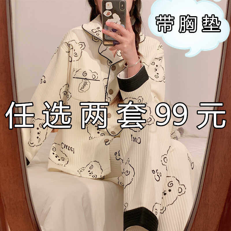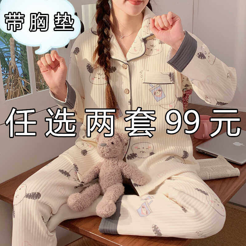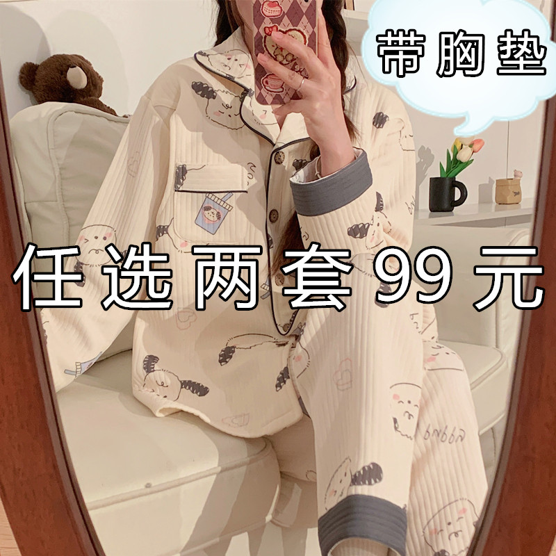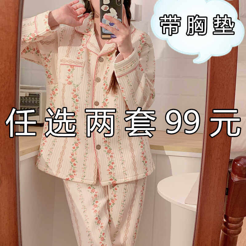 长袖 带杯带胸垫冬季 男纯棉睡衣女新款 蕉内棉棉301Home家居服套装