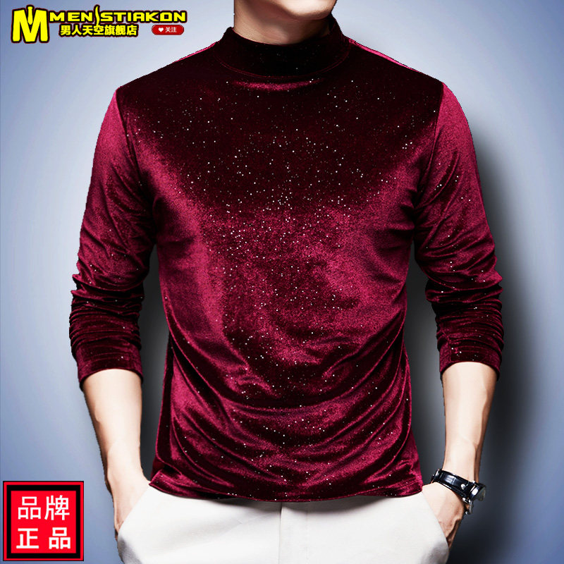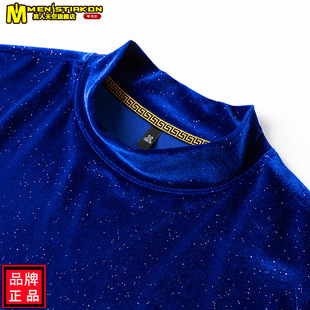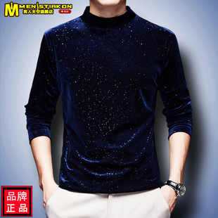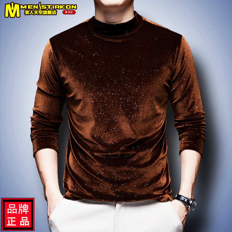 休闲t恤金丝绒男半高领秋装 秋冬满天星新款 打底上衣 男士 2025长袖