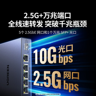 绿联万兆交换机2.5G千兆5口8口路由器网口扩展VLAN划分链路聚合家用企业监控专用10G光口可接光纤网络分流器
