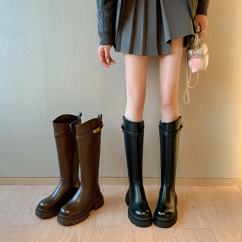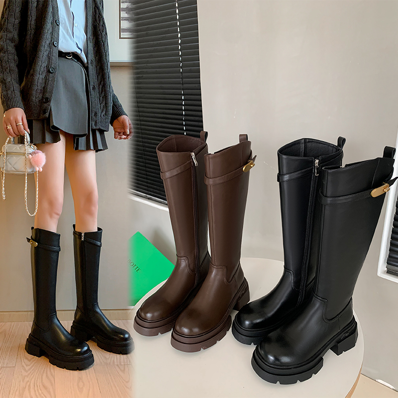 加宽加大筒围长筒靴女显瘦斜口高筒靴粗腿胖mm骑士靴全牛皮直筒靴
