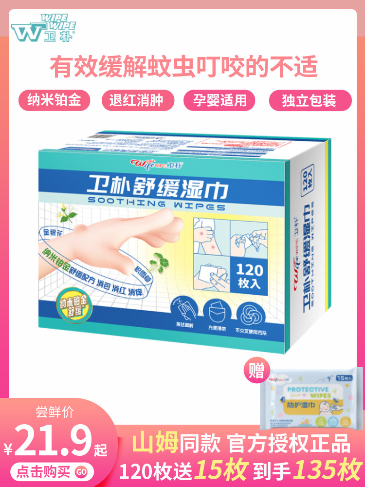 山姆同款 卫朴舒缓湿巾孕妇宝宝户外蚊子蚊虫叮咬止痒修护湿纸