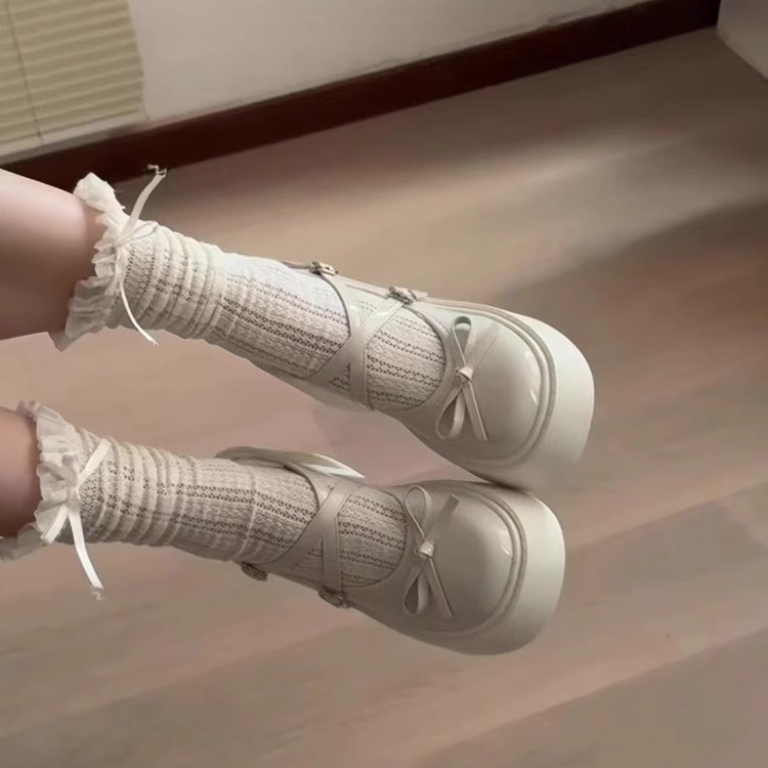 百搭蝴蝶结玛丽珍鞋 法式 日系时尚 女2025年新款 复古粗跟厚底小皮鞋