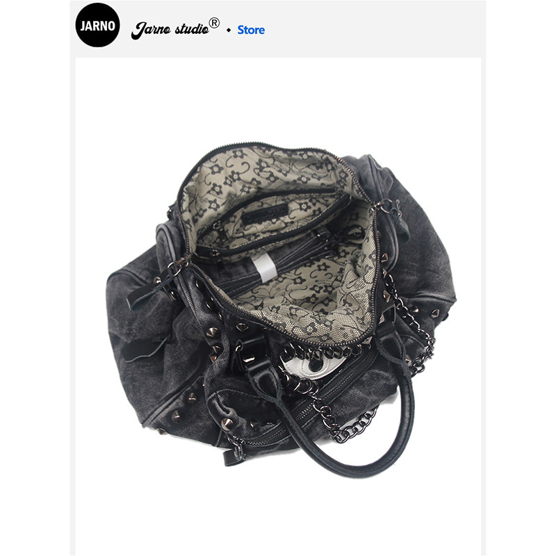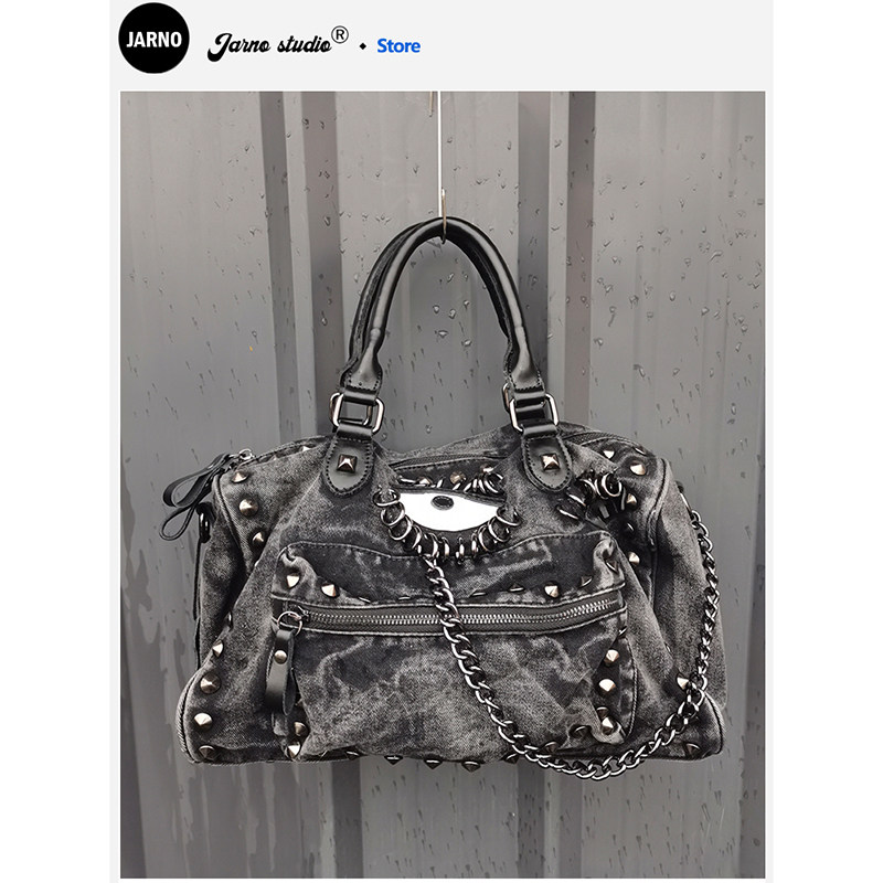 2025新款 辣妹酷飒风拽姐牛仔包包女手提包斜挎包大 夏黑色朋克美式
