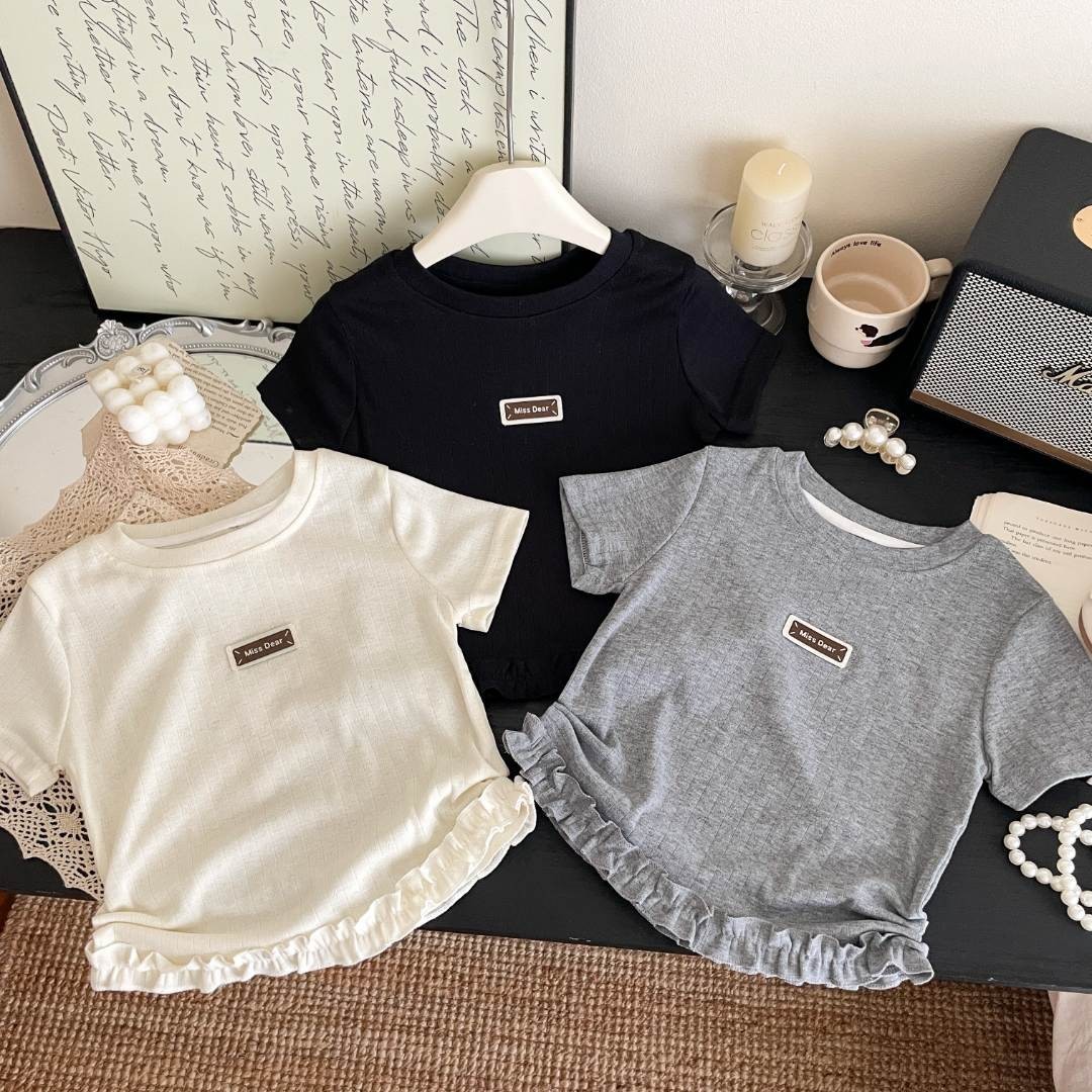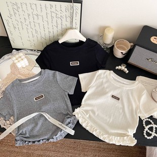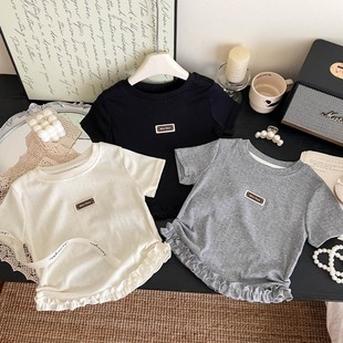 女宝洋气百搭花边半袖 女童提花短袖 韩版 新款 上衣 T恤2025夏季
