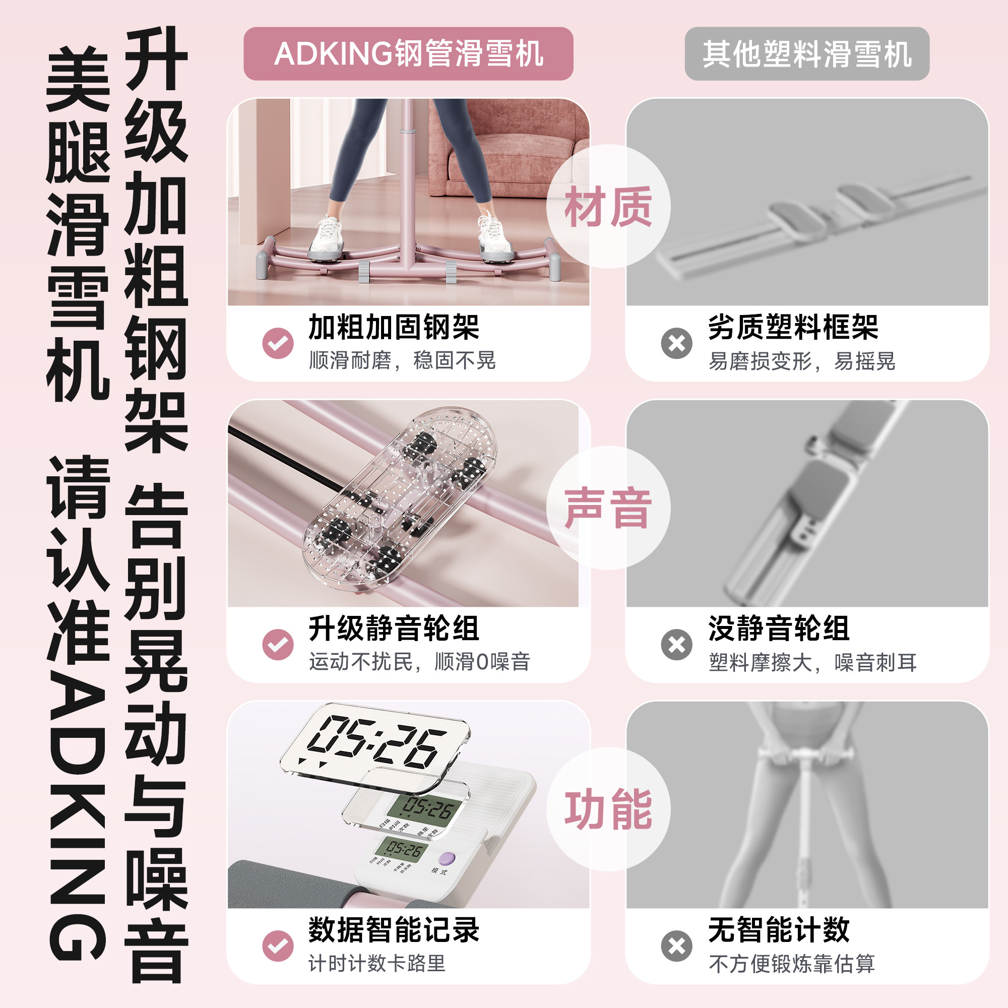 滑雪机瘦腿神器女产后盆底肌训练器家用健身夹腿练腿部肌肉美腿机