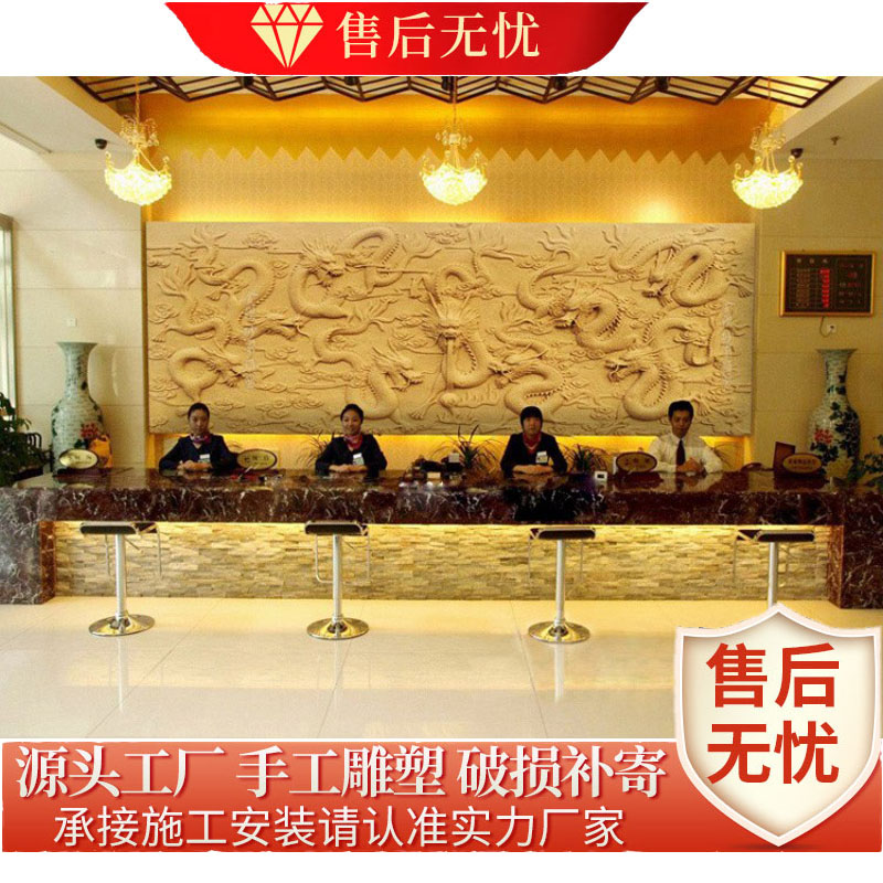 砂岩浮雕壁画背景墙九龙图龙凤呈祥装 饰浮雕立体雕刻玄关壁画现货