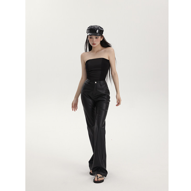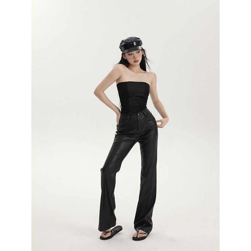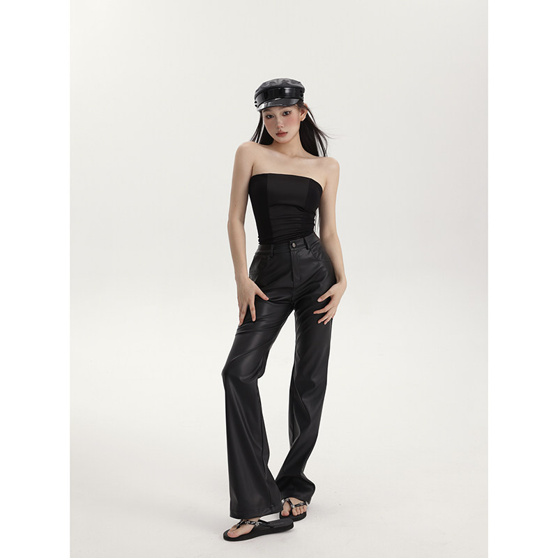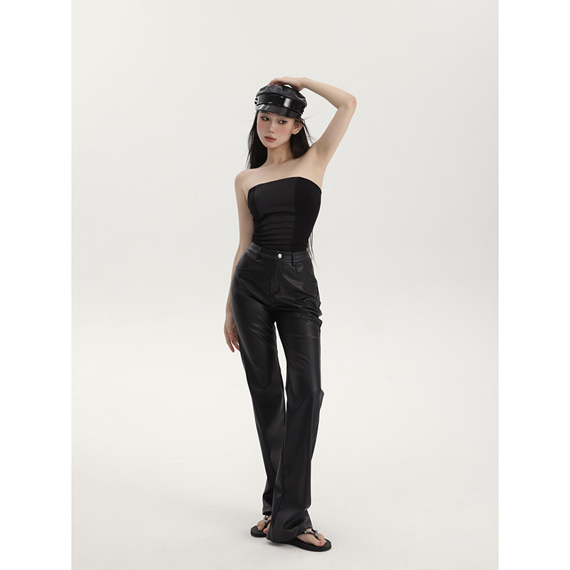 春夏显瘦百搭直筒长裤 女高腰极简微哑光质感直筒皮裤 休闲裤 PEMPL