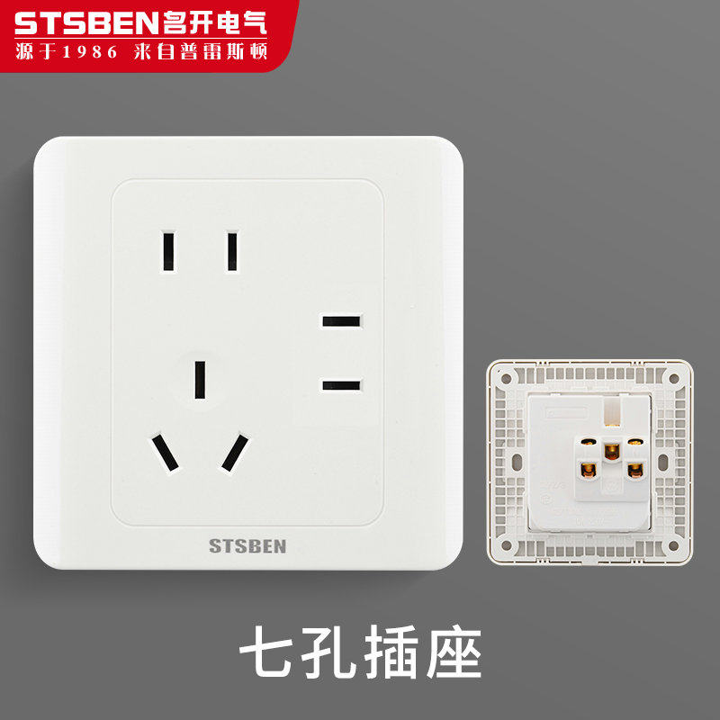 四眼插座 二二三多孔插座面板 七孔插座 7孔电源插座 86型墙壁暗装