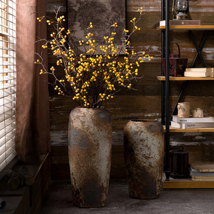景德镇新中式 陶瓷落地大花瓶庭院客厅摆件斑驳做旧粗陶罐摄影道具