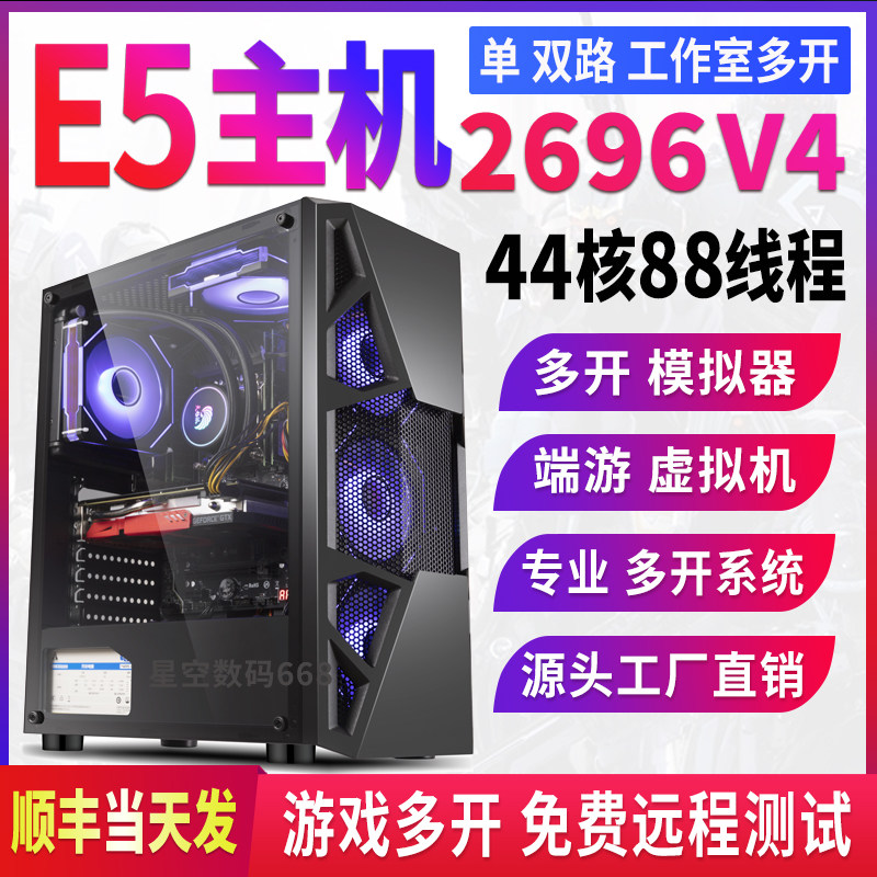 44核至强E5电脑主机2696V4游戏多开工作室模拟器搬砖虚拟机服务器