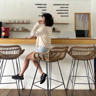 实木高脚凳吧台高凳拍照凳商用高凳复古酒吧椅奶茶店手机店凳高椅