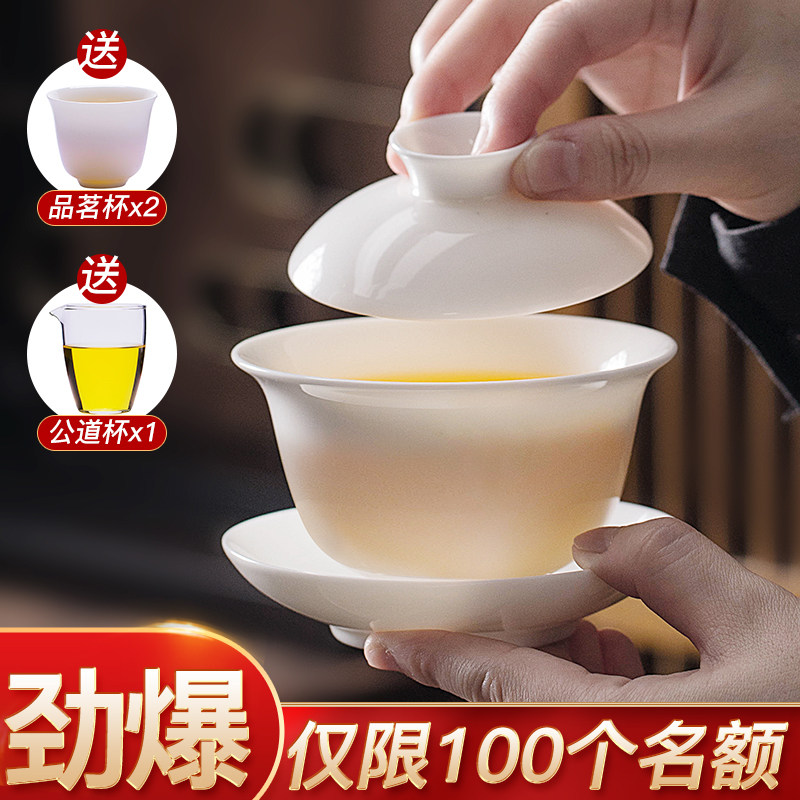 羊脂玉盖碗茶杯陶瓷单个高端大号泡茶功夫三才碗德化白瓷茶碗茶具