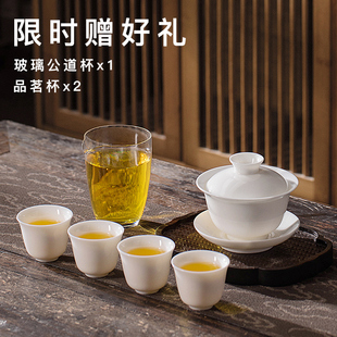 茶具套装 小套白瓷玻璃盖碗泡茶家用功夫羊脂玉杯 高档办公室礼盒装