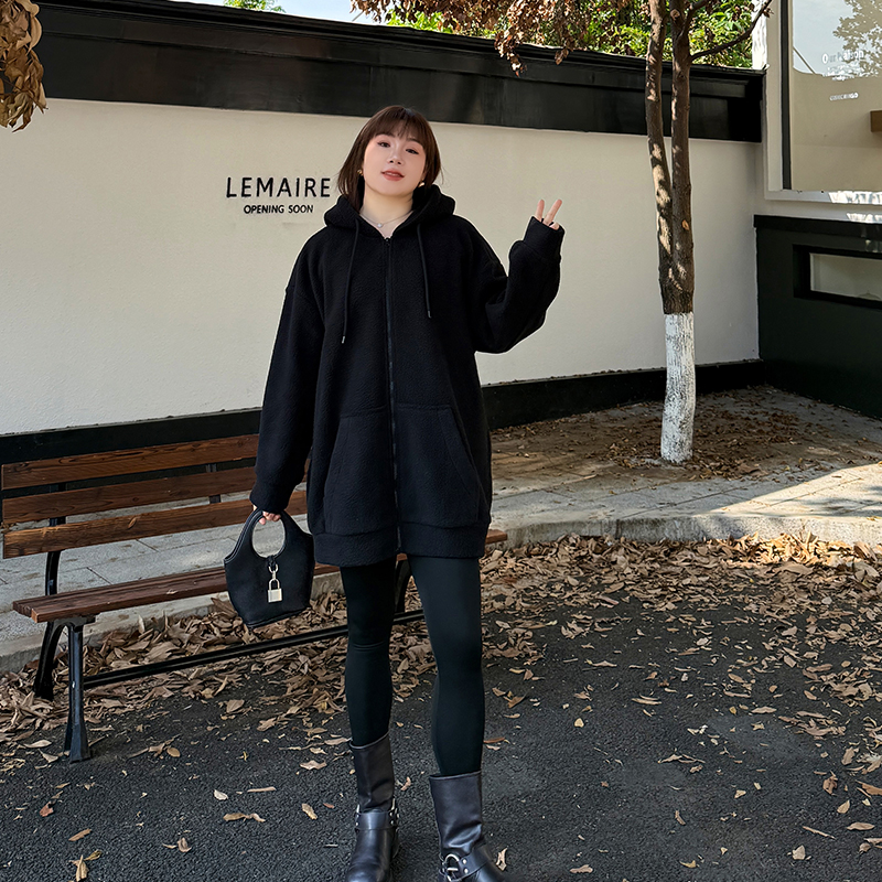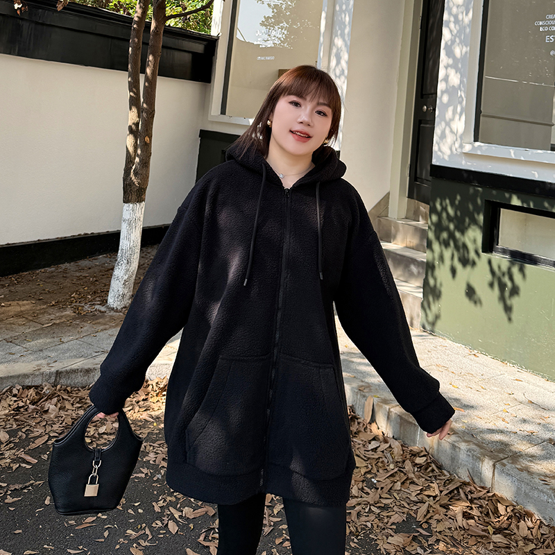 胖mm摇粒绒卫衣宽松加绒加厚休闲开衫 心存真大码 羊羔绒外套女冬季