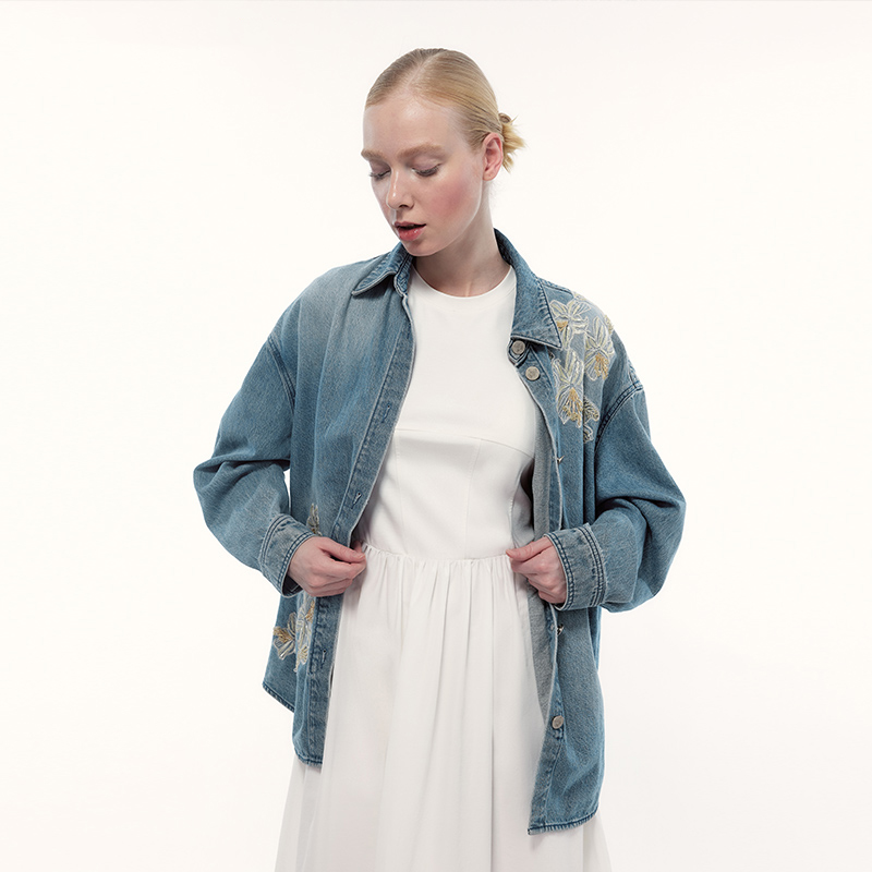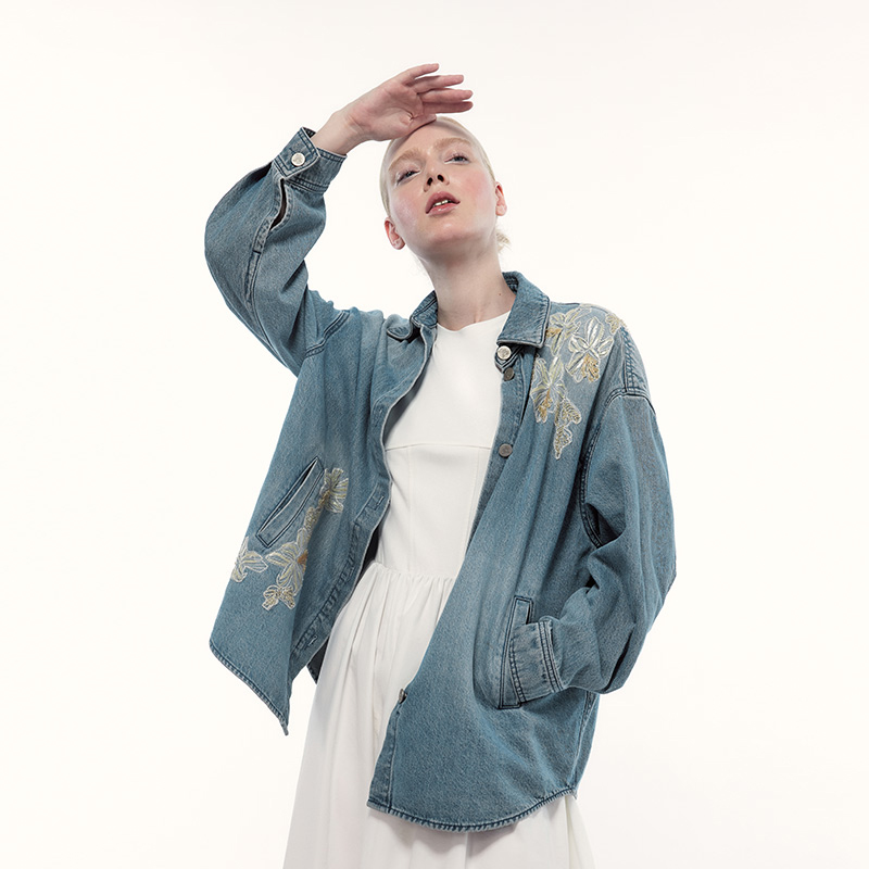 艺之卉重工云裳珠片刺绣牛仔衬衫 设计感上衣 外套女2025秋新款