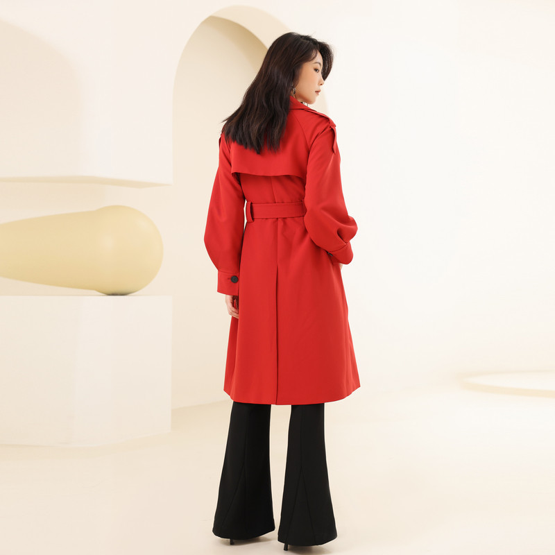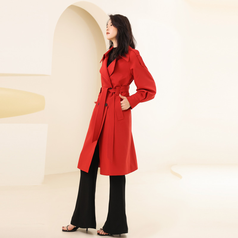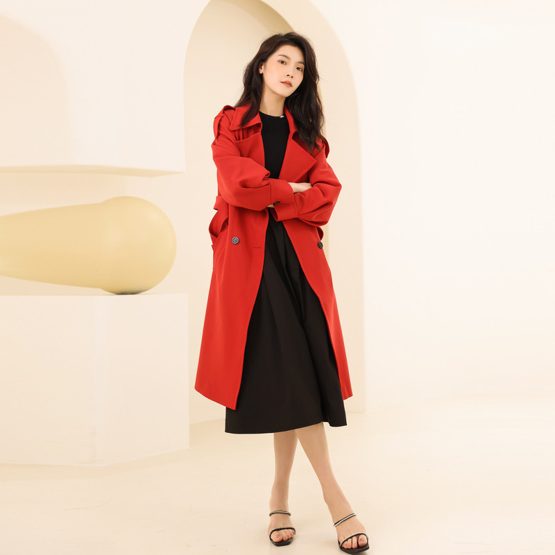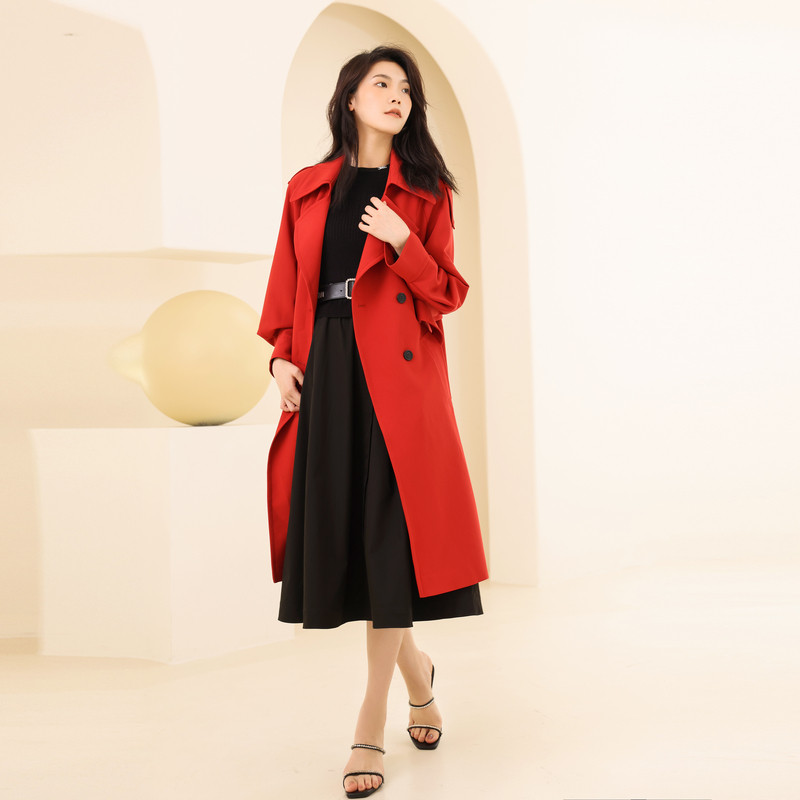 婉甸2025石榴红长款 外套新年限定1241B02SJ1YX 风衣气质款
