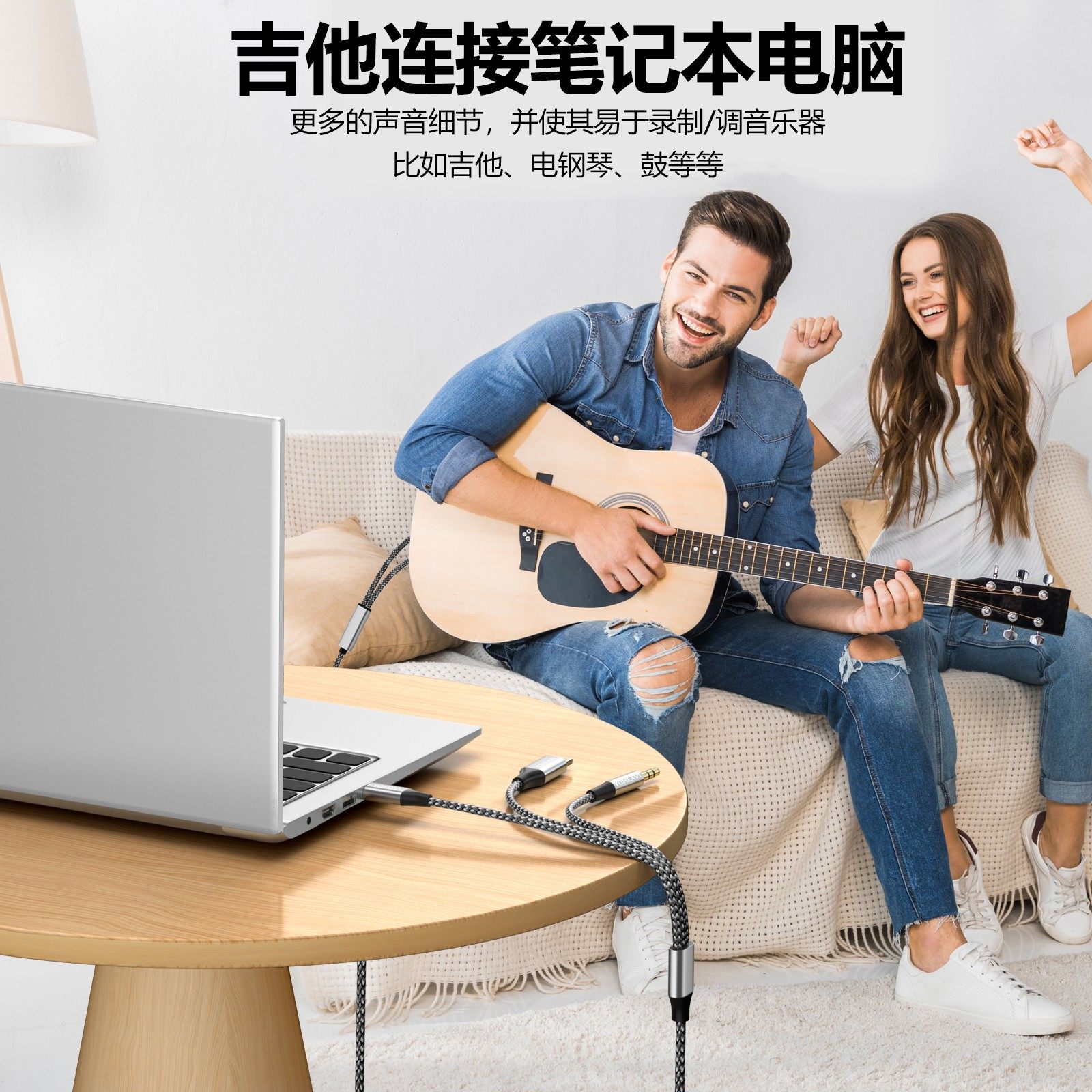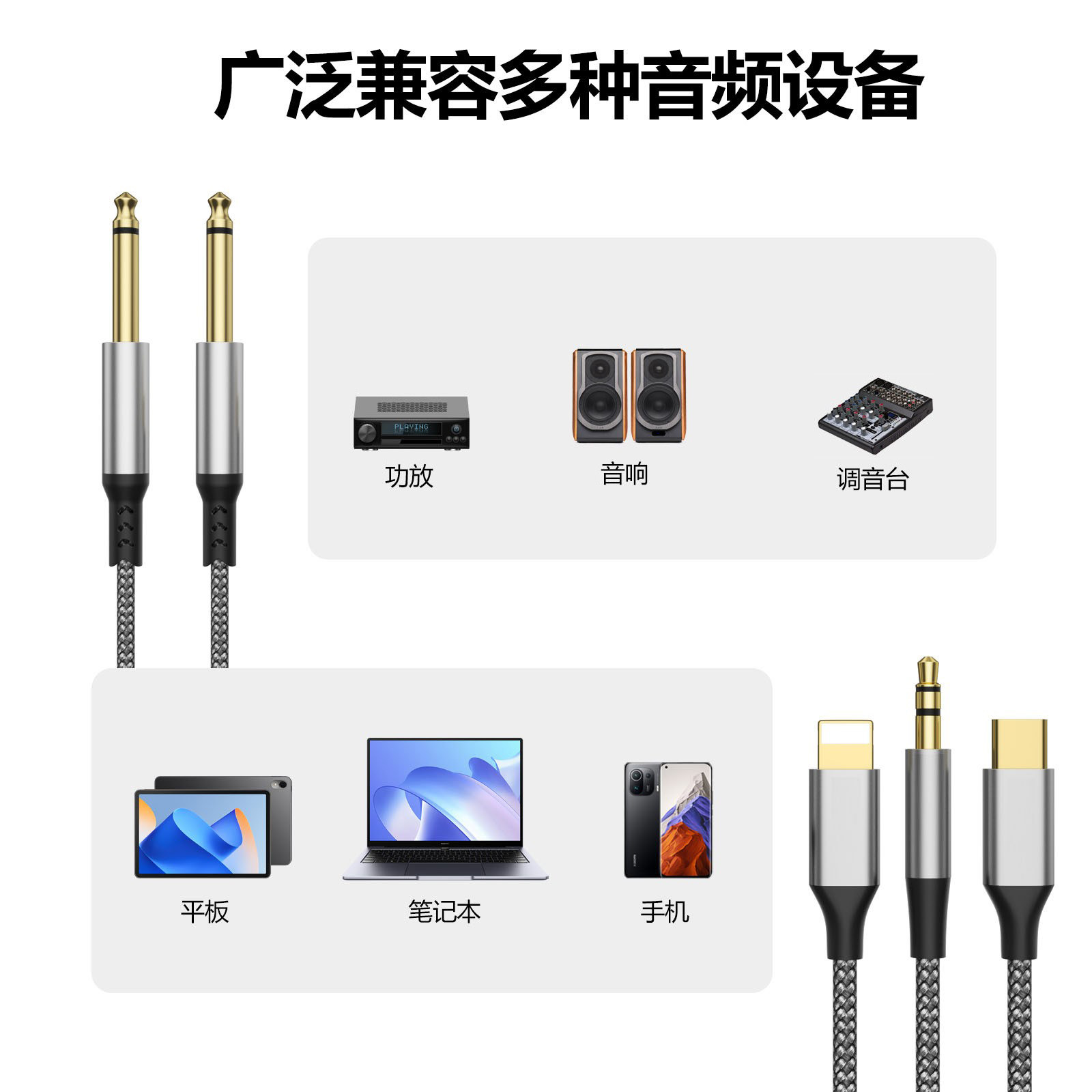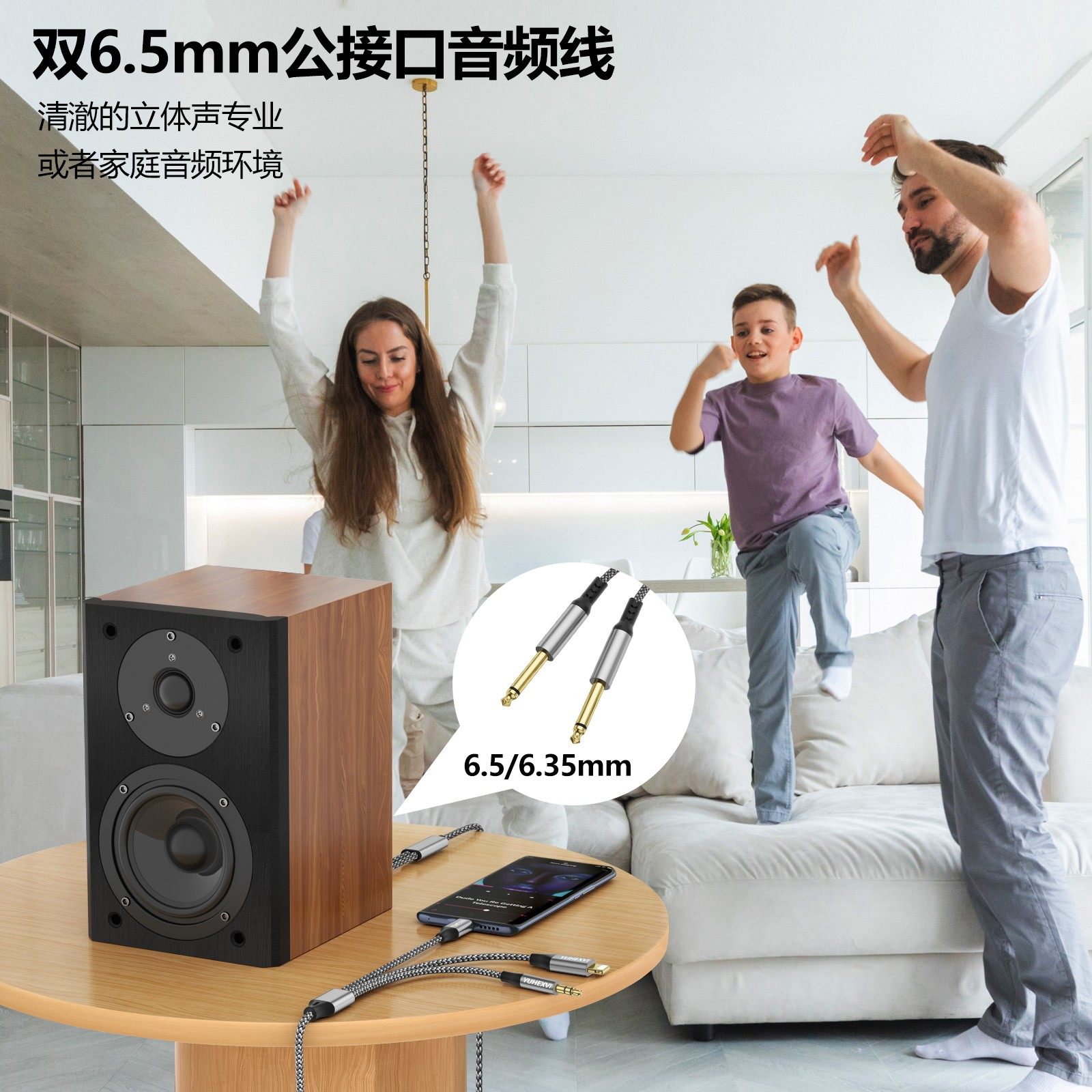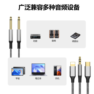 三合一转双6.5mm音频线适用苹果手机Typec连接功放调音台音箱6.35