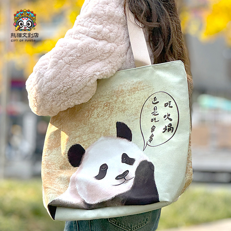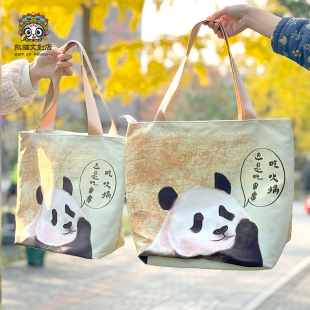 可爱熊猫包包单肩包大容量百搭手提包送闺蜜手拎斜挎包成都纪念品
