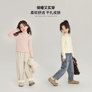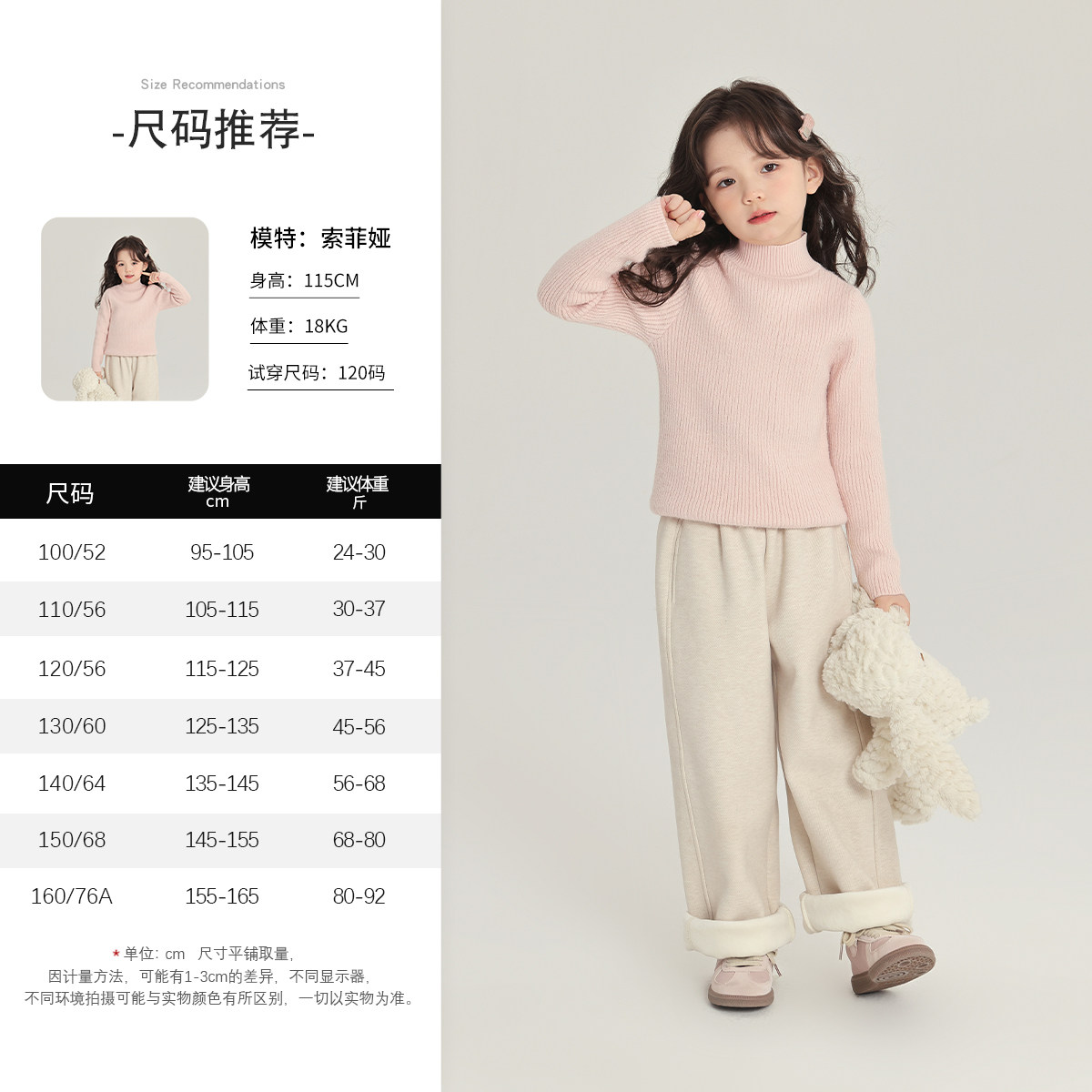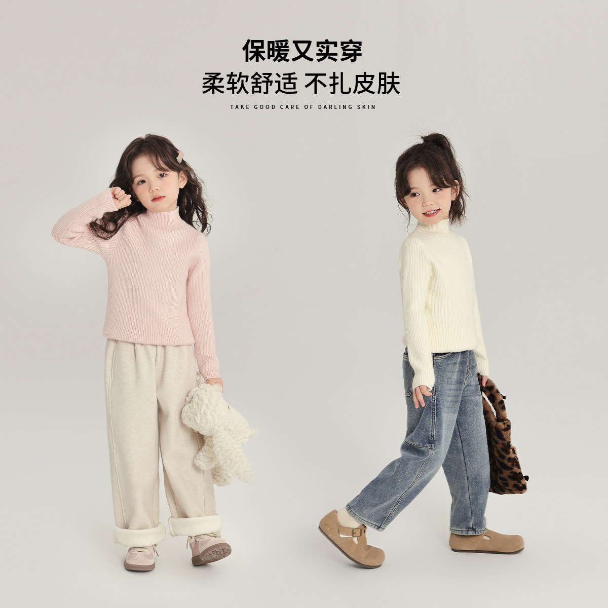 新款 沫沫家童装 2025秋冬季 女童纯色针织衫 儿童百搭半高领毛衣 冬装