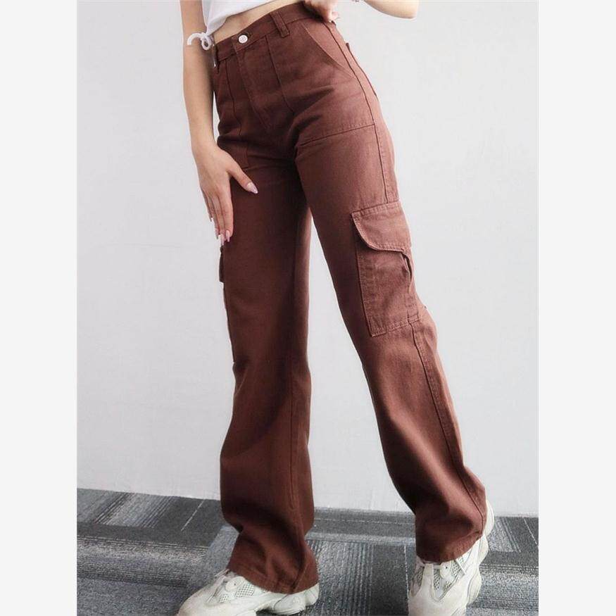 Pants Women HighWaist Straight Trousers Cargo Baggy Lady Leg