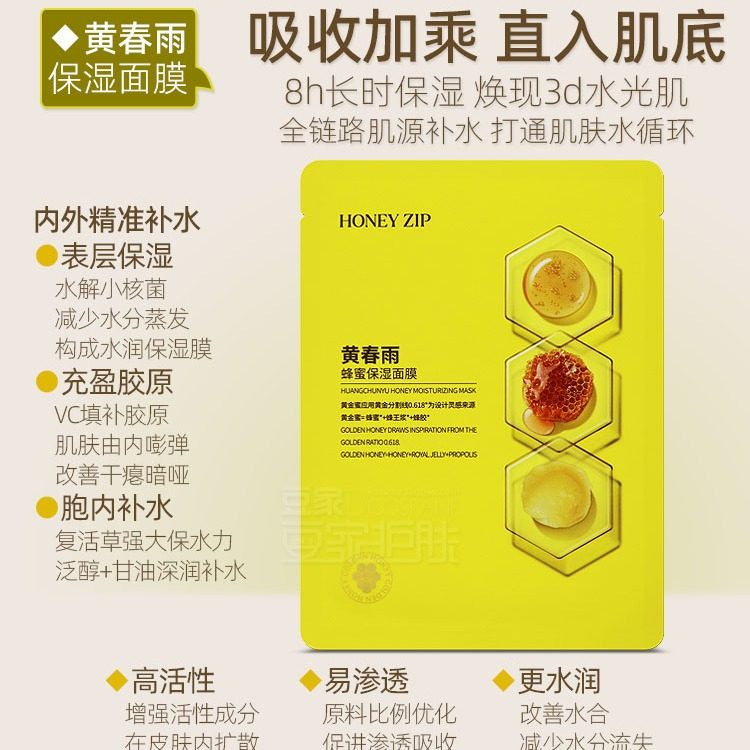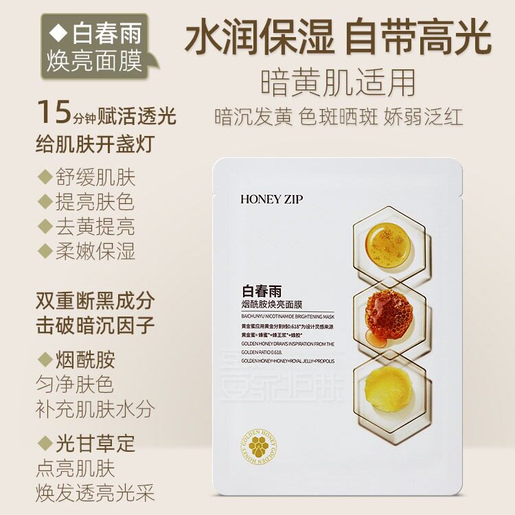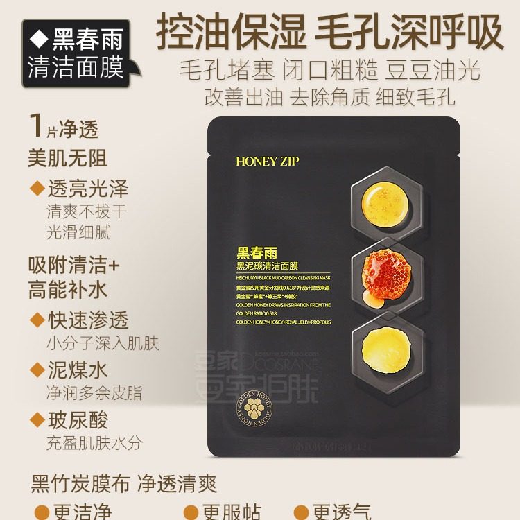 HONEYZIP春雨面膜补水保湿 提亮去黄蜂蜜烟酰胺黑泥碳清洁控油焕亮