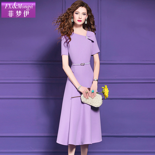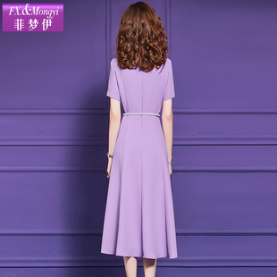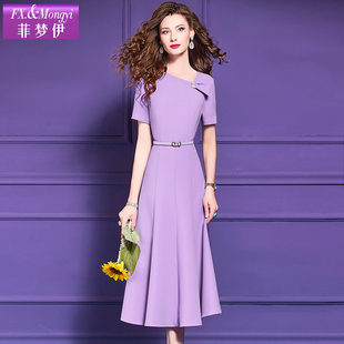 高级感优雅端庄收腰气质A字裙子 新款 菲梦伊斜领连衣裙女短袖 夏装