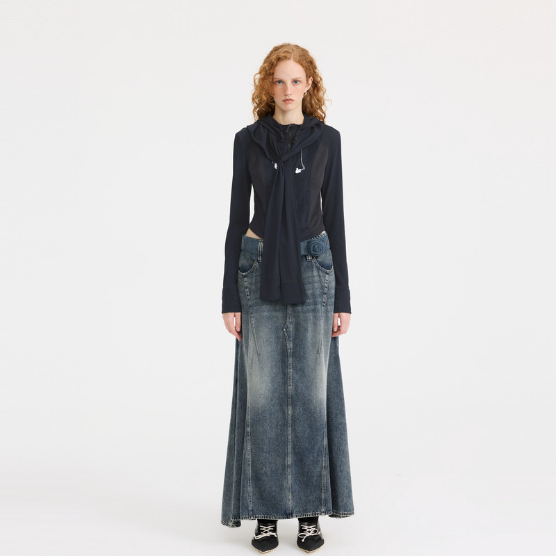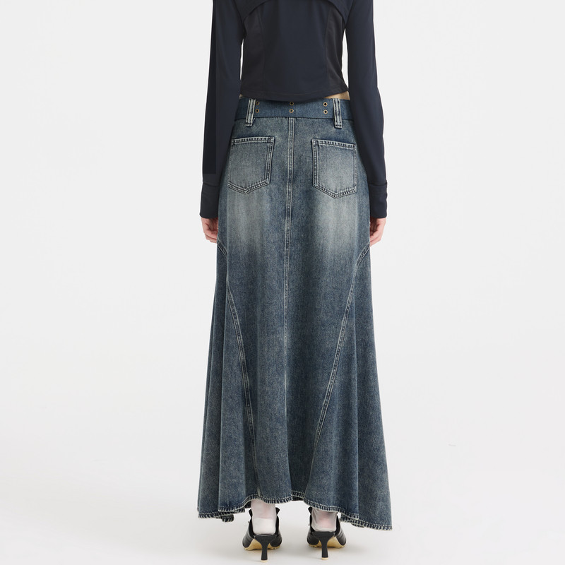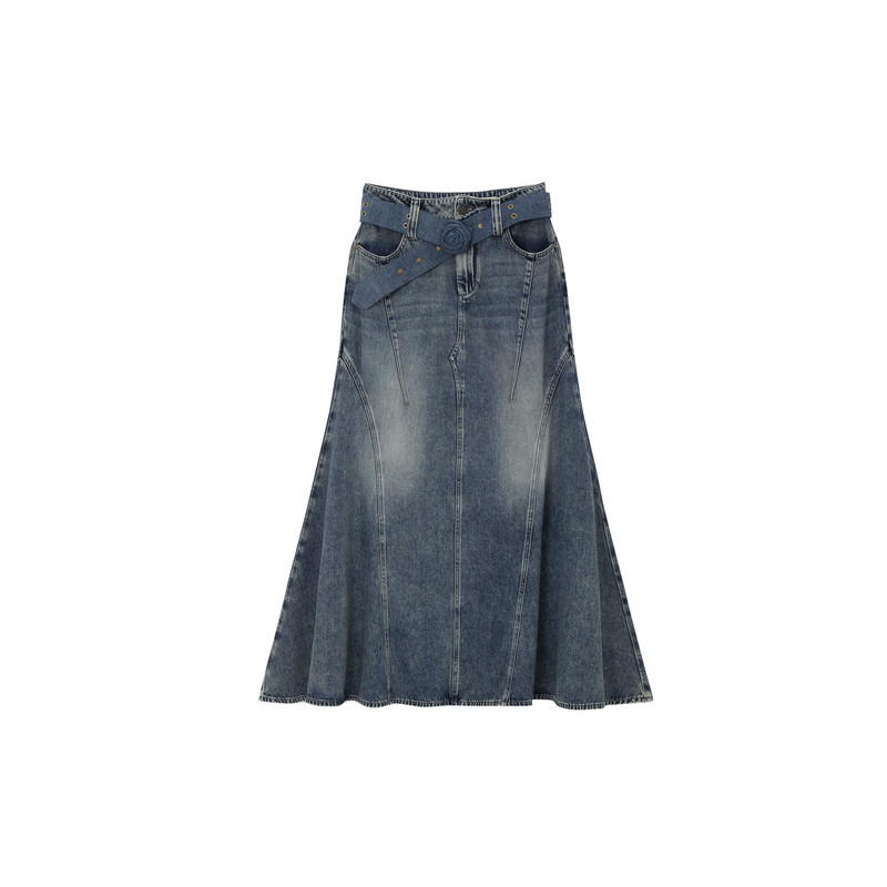 REVAN芮范设计师款 玫瑰花腰带鱼尾牛仔裙RL11507142