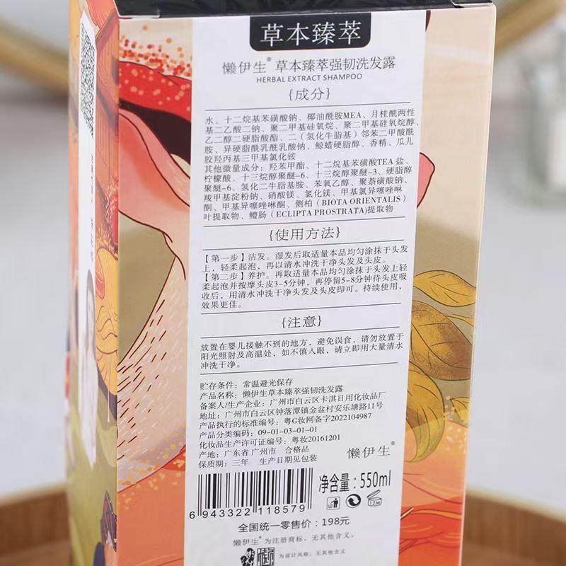 懒伊生洗发水无硅油草本臻萃强韧健发控油去屑防脱发膜护发素套装