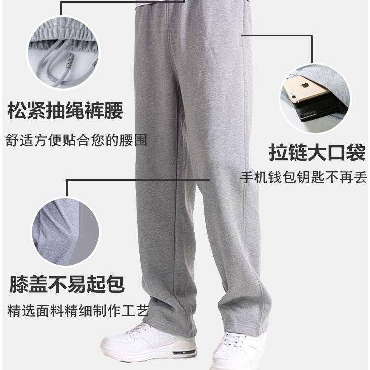 宽松纯棉休闲裤 男长裤 冬加绒针织卫裤 大码 秋冬季 直筒跑步裤 运动裤