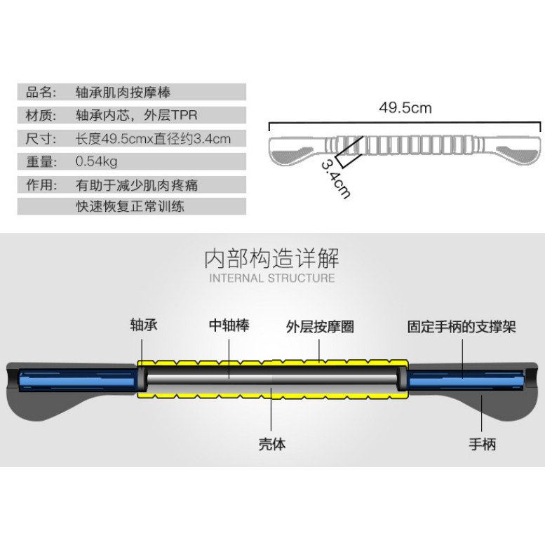 肌肉按摩棒瑜伽棒轴承按棒健身棒训练按摩舒压棒放松腰部颈部腿部