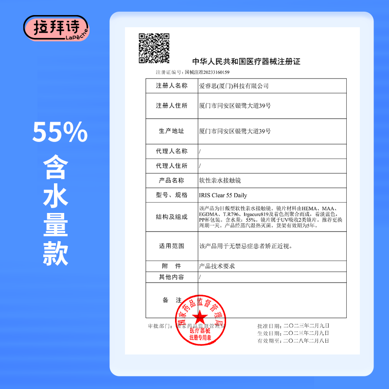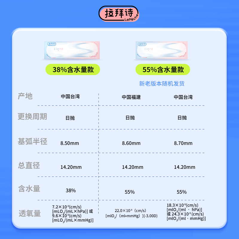 Lapeche拉拜诗light系列双子片日抛10片装 近视隐形眼镜双含水盒SK