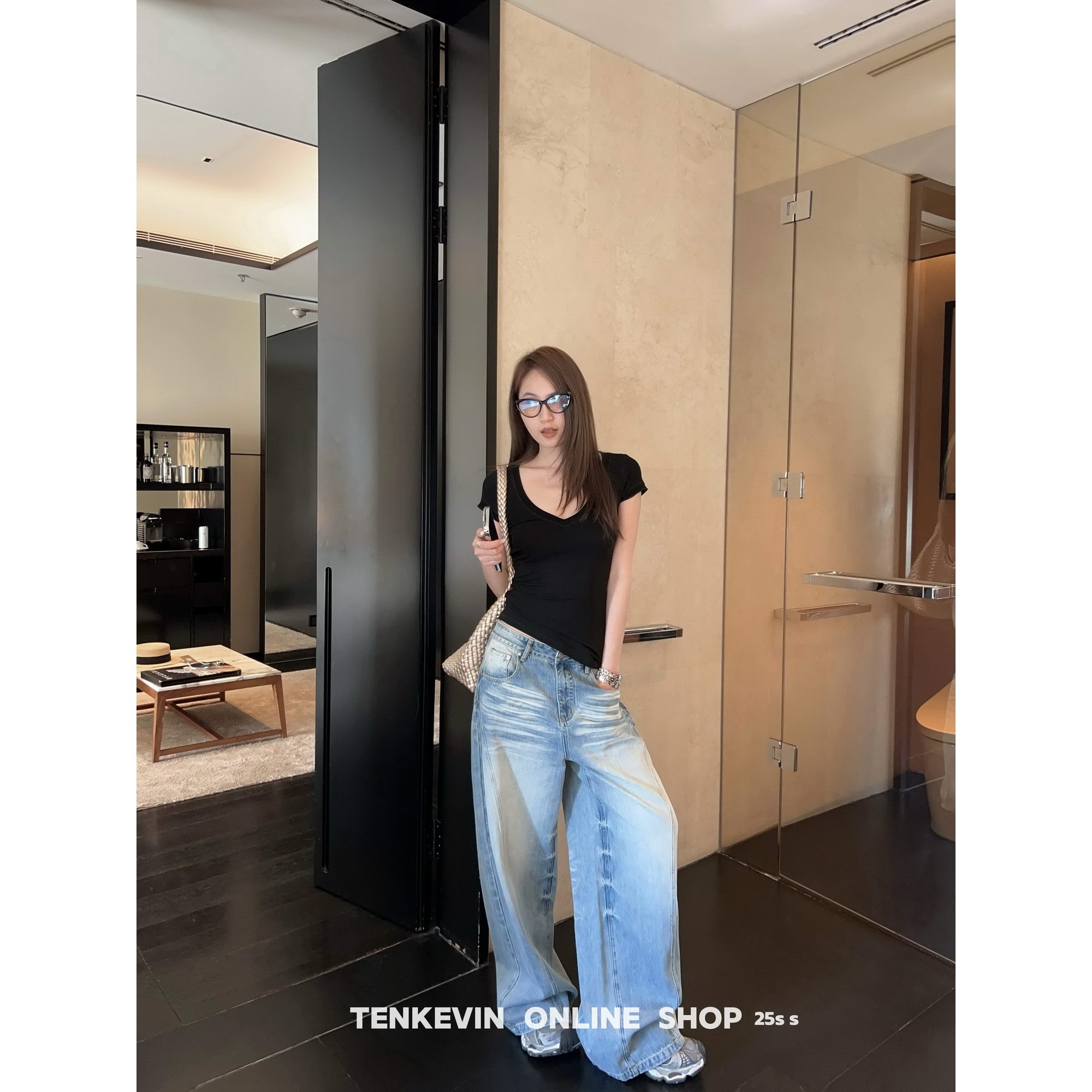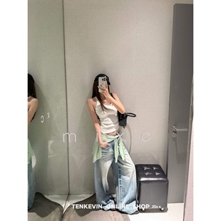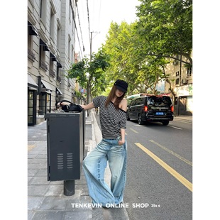 女宽松显瘦直筒阔腿裤 十一石 水洗猫须弯刀牛仔裤 自留款 四季