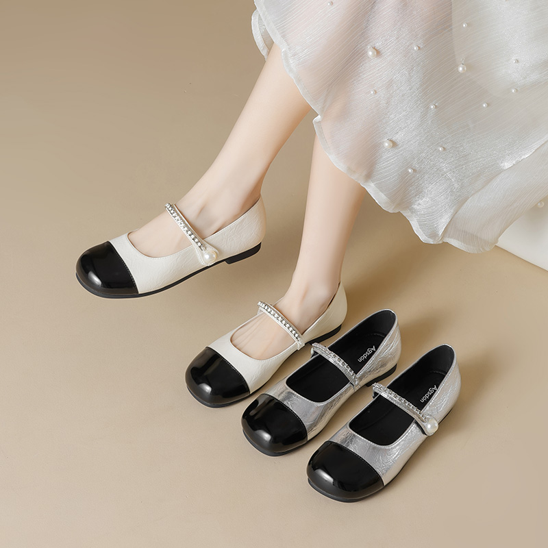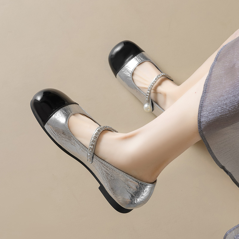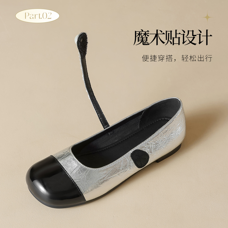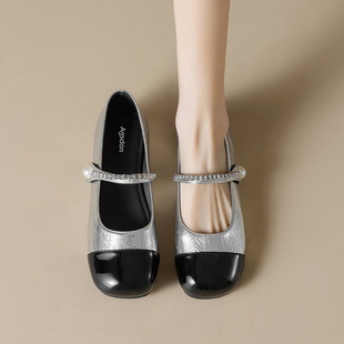 小香风平底小皮鞋 奥古狮登银色玛丽珍鞋 法式 秋季 爆中跟 女2025新款