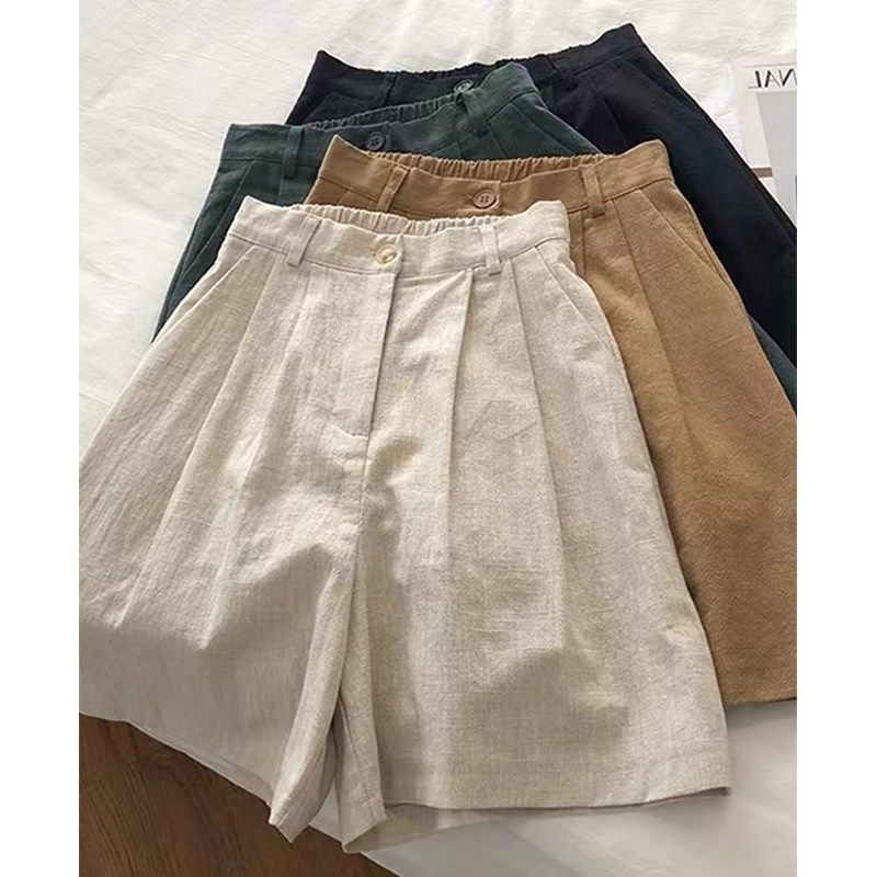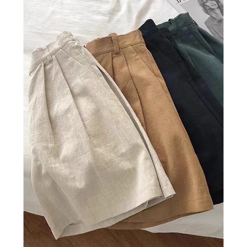 梨形身材显瘦宽松高腰休闲五分裤 日系棉麻短裤 胖mm大码 新款 女夏季